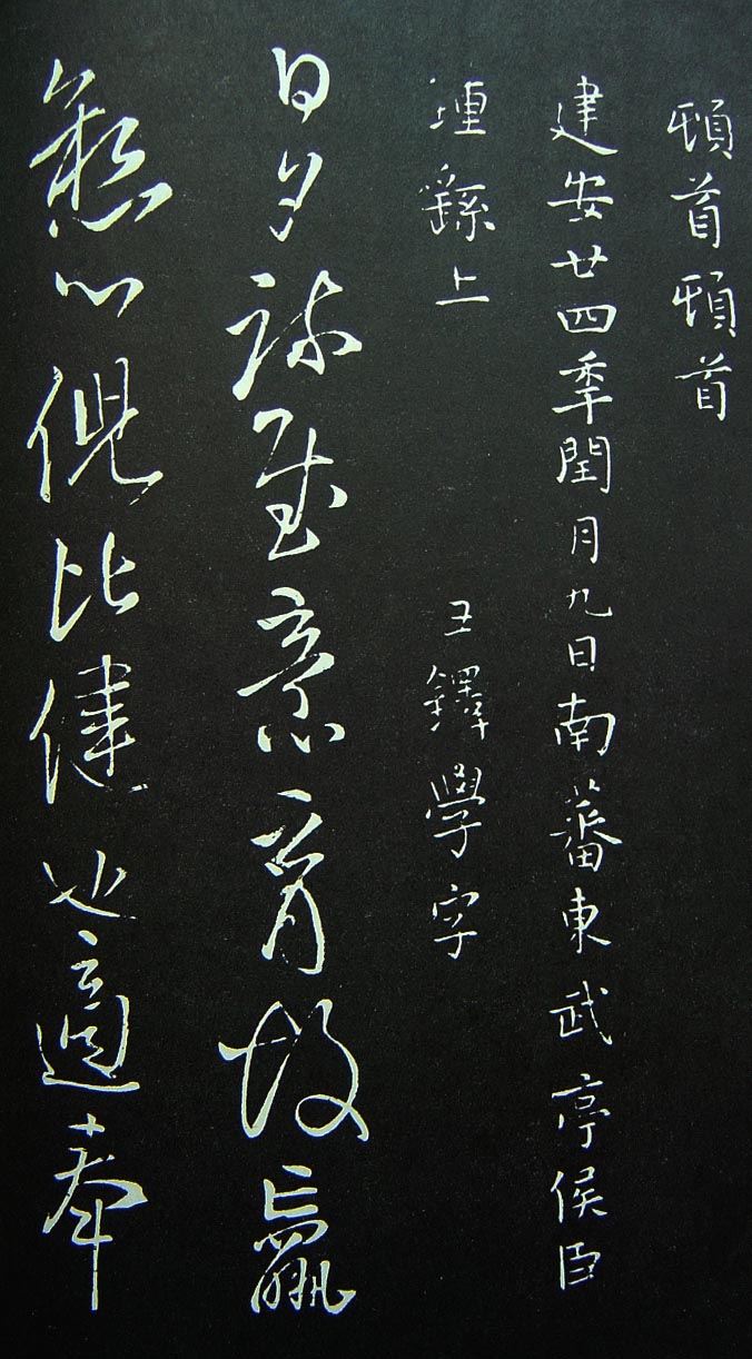 《拟山园帖》,共十卷,清代个人丛帖。清顺治八年至十六年(公元1651-1659年)王铎之子无咎撰集,古燕吕昌摹,张翱镌。帖名行书。此帖全刻王铎一家之书,共103种,其中大多为临古之书。王无咎传留大量的王铎书迹,因而所选皆精湛。刻者亦一时名手,而其它王书刻帖均不如此本为佳,帖后有张缙彦、龚鼎孽及无咎题跋。张缙彦跋曰:“文安公书法妙天下,?毛泰史括所藏书及墨苑家所流传汇集此本,有缺略模糊必求别本正字补之,备极龙跃虎卧猊攫象搏之致,文安四十年精力尽在此矣。近代玄宰、子愿两先生戏鸿、来禽二帖坛?海内,昔卫夫人见右军书叹:"此子必掩我名",此本出,惜两公不及见也。”故此帖无论是所选之帖还是摹刻方面,都极为精妙,远胜琅华、银湾诗酒论二十等帖。