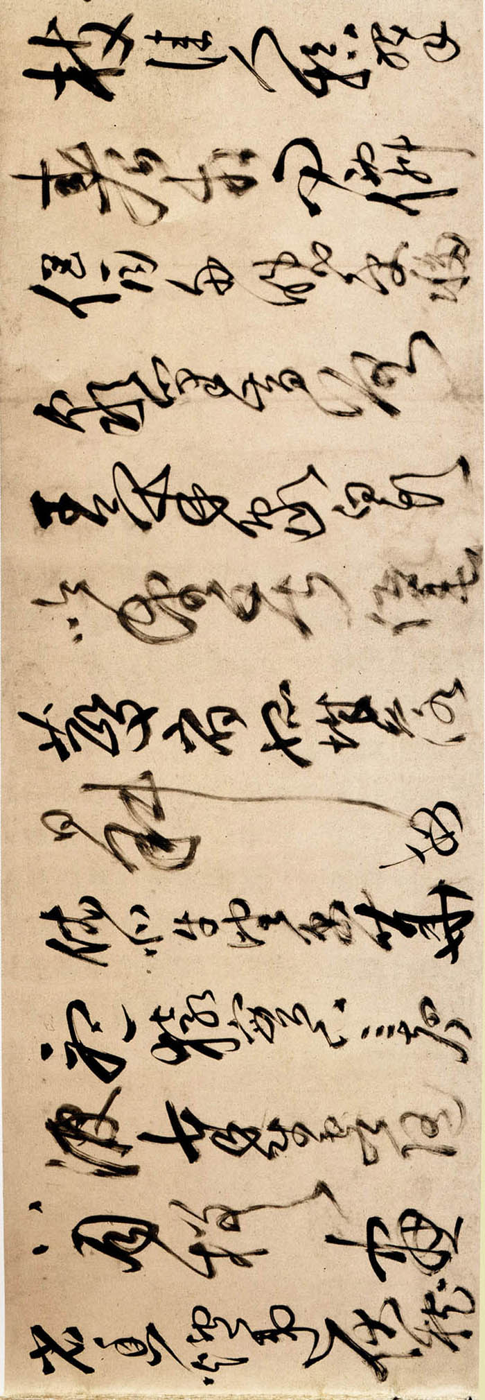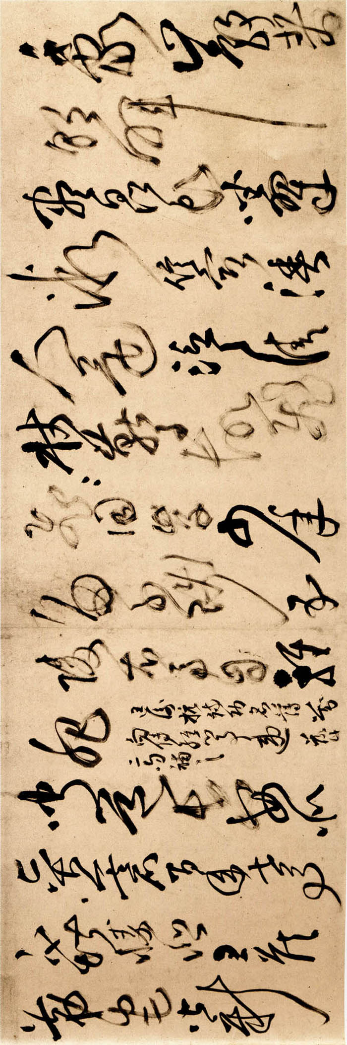 自署书于丙戌年(清顺治三年,1646年) 。纸本。凡六14行,共324字。纵28厘米,横420厘米。节录杜甫《秋兴八首》其中五首。笔力雄强、墨色丰富,汪洋恣肆、酣畅淋漓,真乃有鬼神助力。广州美术馆藏。