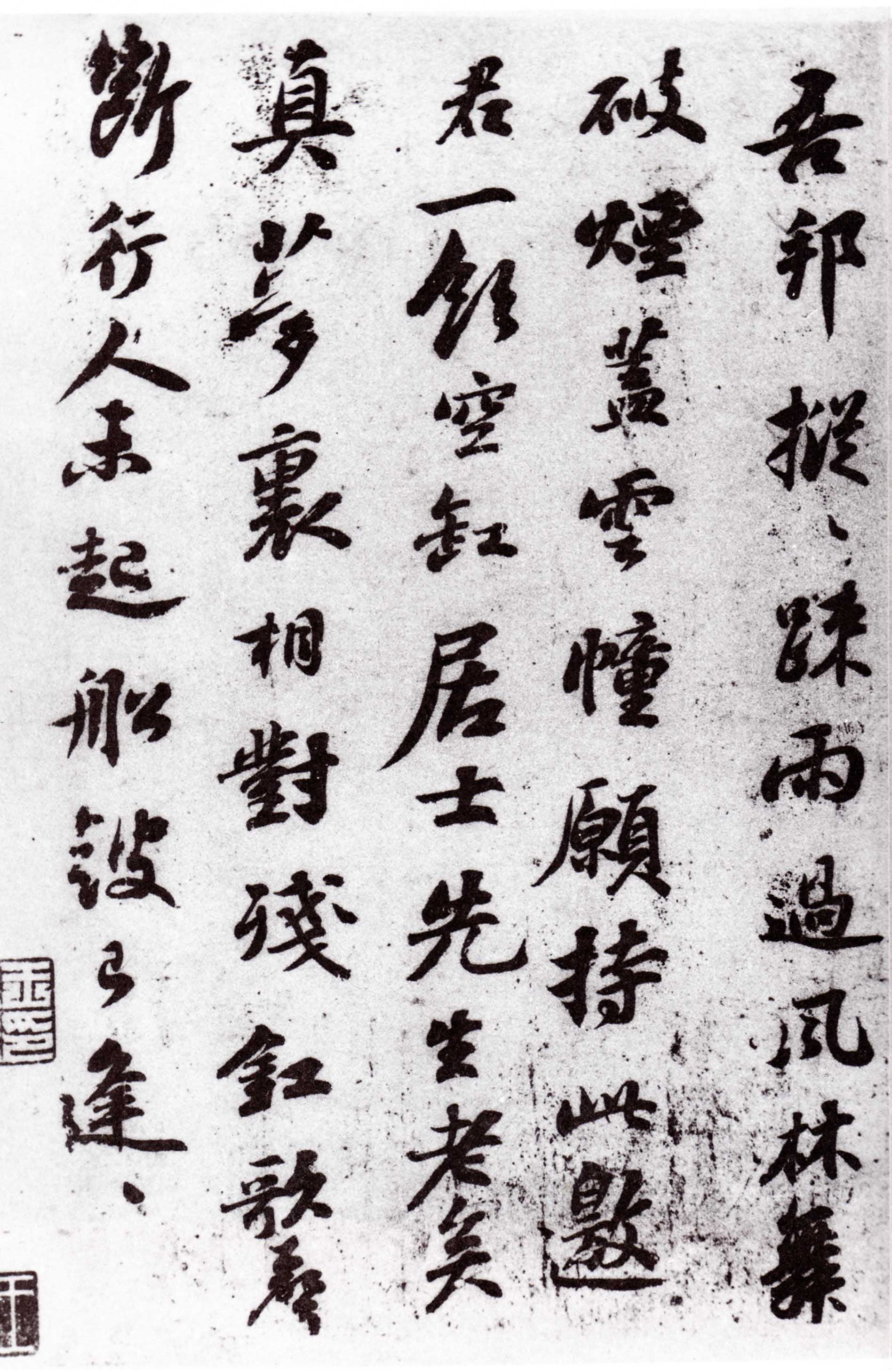 释文:三十三年,今谁存者?算只君与长江。凛然苍桧,霜干苦难双。闻道司州古县,云溪上、竹坞松窗。江南岸,不因送子,宁肯过吾邦?