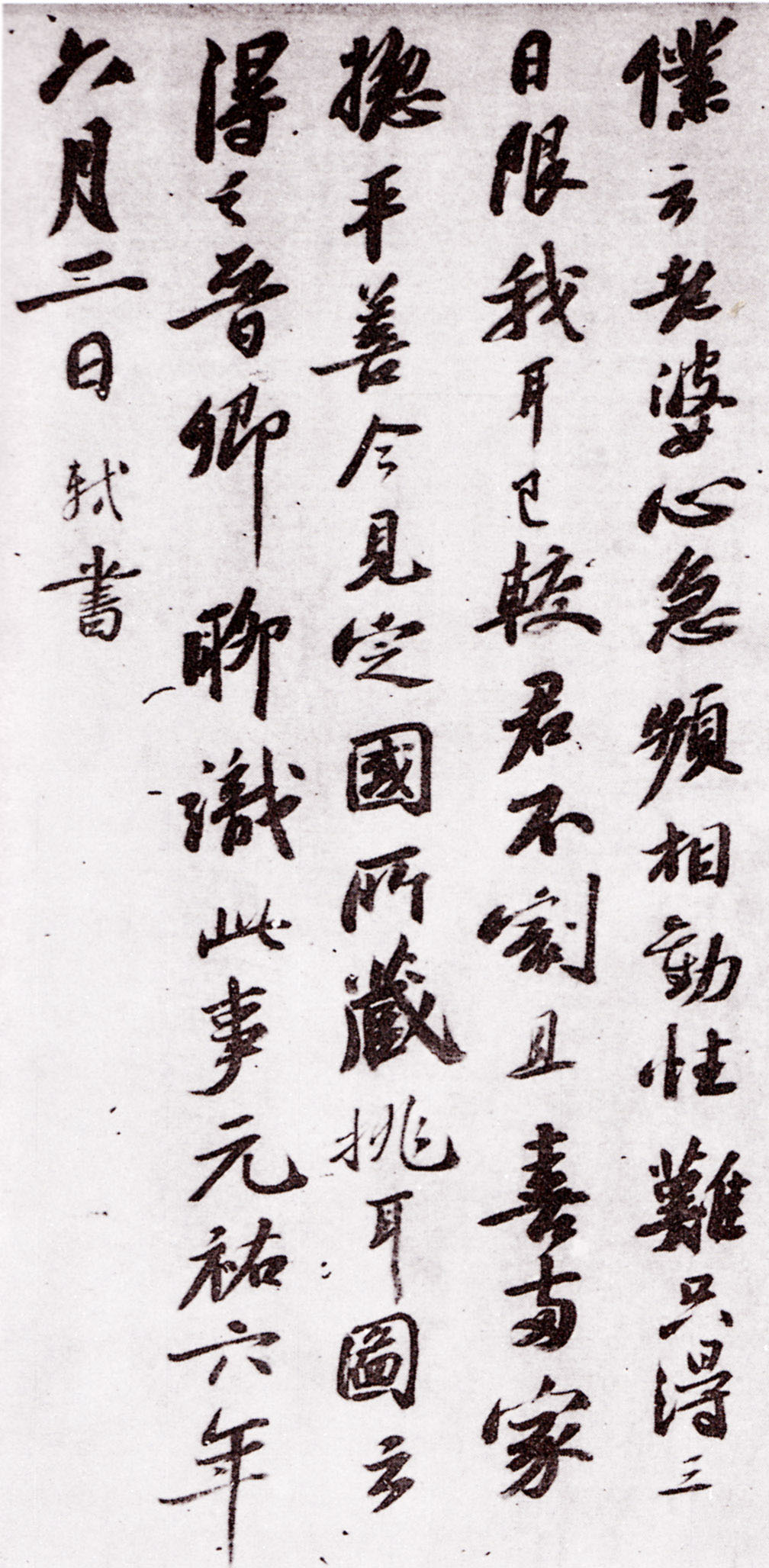 释文:王晋卿尝暴得耳聋,意不能堪,求方于仆。仆答之云:“君是将种,断头穴骨当无所惜,两耳堪作底用,割舍不得?限三日疾去,不去割取我耳!”晋卿洒然而悟,三日病良已。以颂示仆云:“老婆心急频相动,性难只得三日限。我耳已较君不割,且喜两家总平善。”今见定国所藏《挑耳图》,云得之晋卿,聊识此事。元祐六年六月二日,轼书。