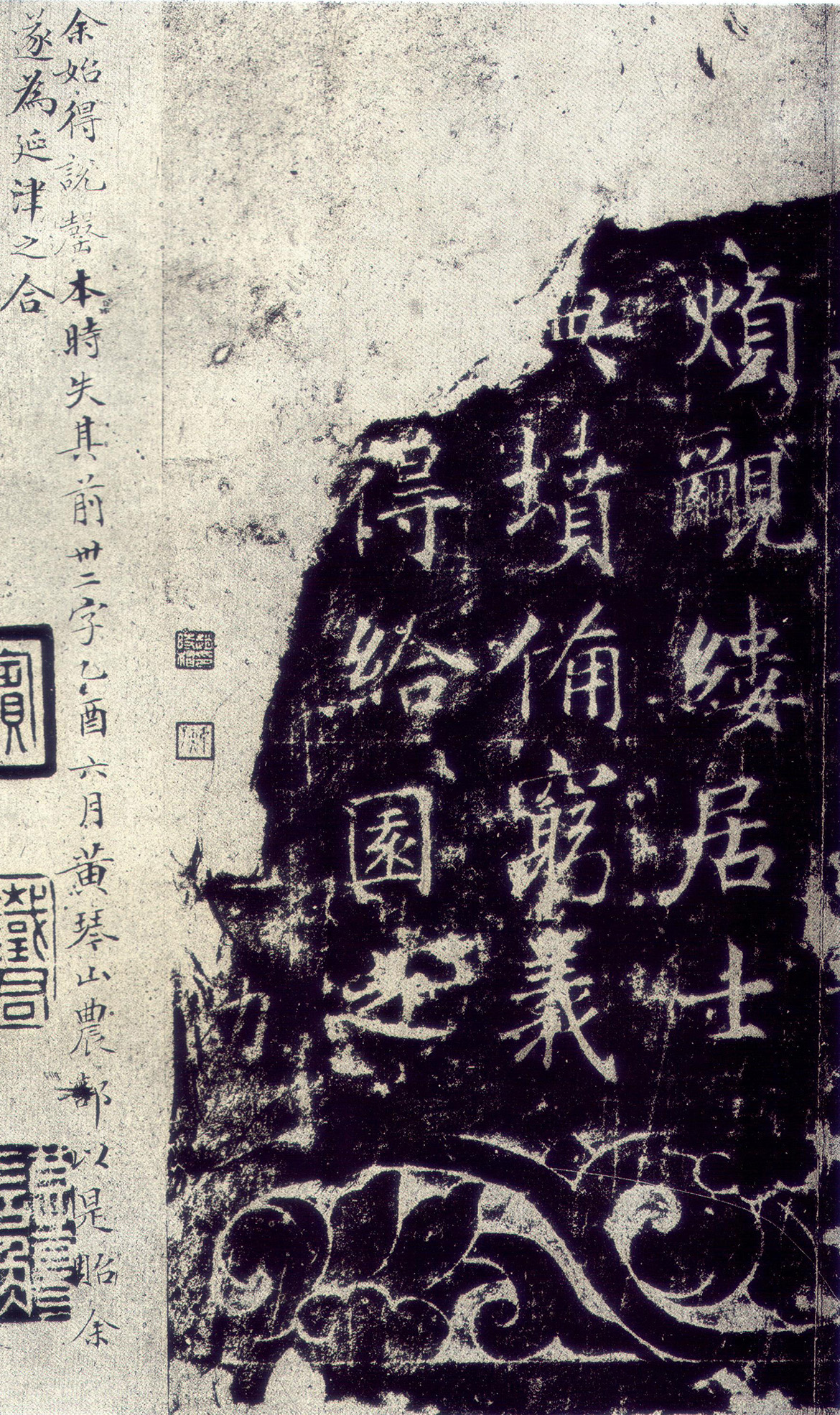 敬客《王居士砖塔铭》正书,十七行,行十七字,上官灵芝撰文,敬客书。此塔铭刻于唐高宗显庆三年(六五八)。敬客,生卒年不详,亦不知为何处山林逸士,《宝刻丛编》与《宝刻类编》皆无其名,但他所处的时代正值初唐诸家如虞世南、欧阳询、褚遂良书法的全盛时期,因此敬客所书此铭亦不可避免地受到他们的影响,钱泳《跋王居士砖塔铭》曰:“《王居士砖塔铭》近日所传者非断本即翻刻本,要如比之精拓而完善者鲜矣。余尝谓唐初书家各立面目,惟是刻能兼率更(欧阳询)、中令(褚遂良)之长而独出机杼,此其所以妙也。”今观此铭,楷法精妙,体势俊逸,风神挺秀,深得欧、褚意法而又能自出机杼,无疑为唐楷中之佼佼者,赵之琛跋云:“敬客书直与欧、虞、褚、薛相抗衡,习楷者当奉为圭臬也。”此塔铭书后即掩埋黄土之下达九百余载,直至明万历年间方始出土。又因其石甚薄,出土未几即便遭损裂,砖已裂3截,后裂5截、7截,至道光年间又佚其二,故世传佳拓极少。更因此刻书法婉润秀整,深获世人喜爱,故辗转翻刻竞相仿效,精者亦几可乱真。今选用赵叔孺所藏初原本公诸于世,以供广大书法爱好者赏习。