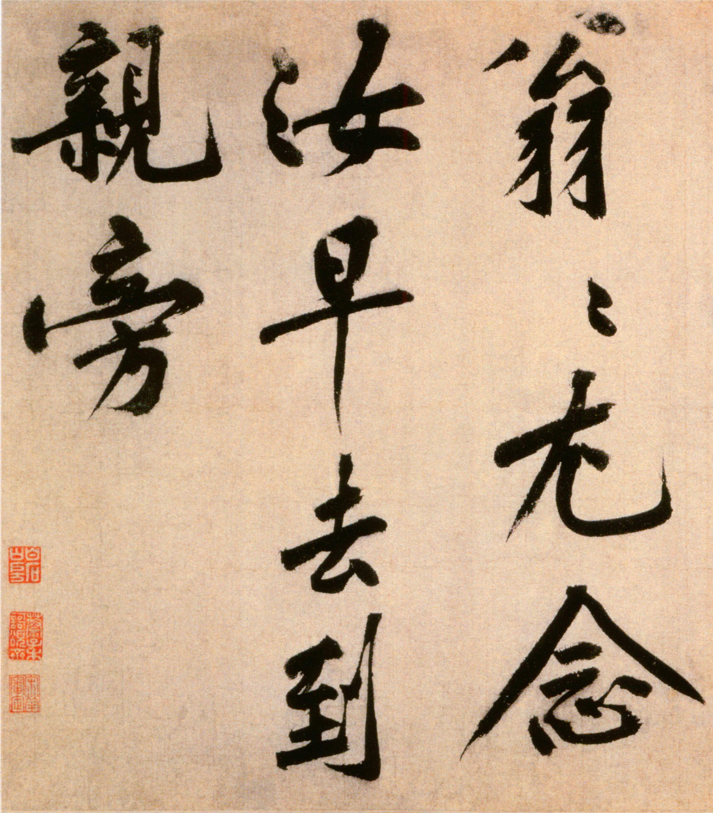 释文:诗送四十九侄。又妷财相见,何堪举别觞。共期同奋发,更勉致轩昂。接物宜从厚,修身贵有常。翁翁尤念汝,早去到亲旁。