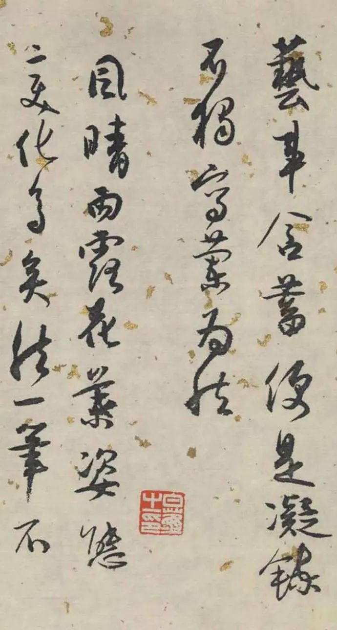 白蕉先生的《兰题杂存》是晚年所写的手稿,因为是手稿,创作状态比较放松。白蕉晚年患高血压,右眼眼底因动脉血管硬化导致上半部分失明,他曾使用“瞎尊者”闲章。白蕉治艺勤奋不辍,其夫人金学仪女士称他“差不多每夜都要用掉一两杯墨”,故白蕉晚年自署为“仇纸恩墨废寝忘食人”。