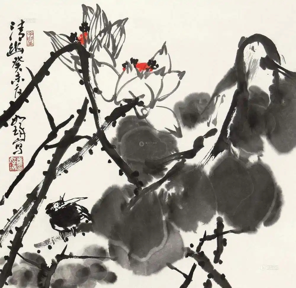 崔如琢花鸟画《荷花》14幅