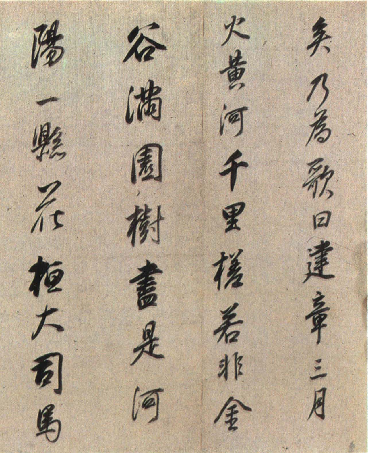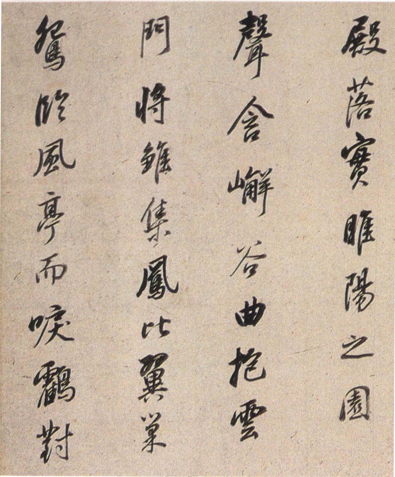 《枯树赋》是南北朝时期文学家庾信羁留北方时所写,以枯树自喻,抒发亡国之痛、故乡之思、羁旅之恨和身世之感。唐褚遂良于贞观四年(六三〇)为燕国公于志宁书此册,墨迹久佚,仅有拓本传世,董其昌《戏鸿堂帖》有收录。《董其昌临枯树赋》,纸本行书,高二十七厘米,长三百六十五厘米,为董氏八十岁时所书,现藏朵云轩。此帖以李北海法写褚,老辣的行笔当中不乏恬静淡然之气,是董其昌行书代表作。