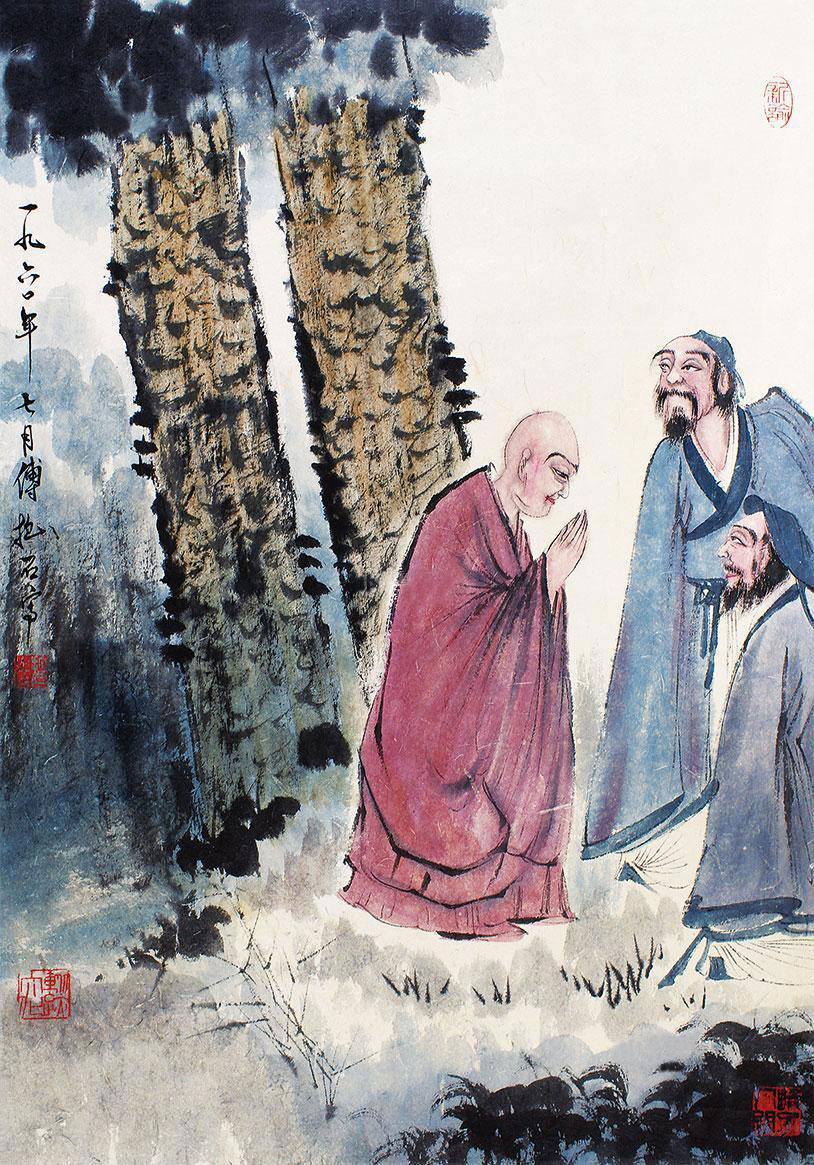 1932年,在徐悲鸿的举荐下留学日本,师从金原省吾攻读东方美学和艺术史。1935年回国任教于南京中央大学,讲授中国美术史。抗战军兴后,曾协助郭沫若从事抗战文艺宣传工作,1939年寓居重庆西郊金刚坡下,并任教于中央大学与国立艺专。1946年随中央大学东归南京。 [48]1951年6月,当选为南京市文学艺术界联合常委;1953年9月,作品《抢渡大渡河》《更喜岷山千里雪》在“全国第一届国画展”展出;1954年5月,当选为华东美术家协会理事;9月,当选为江苏省文学艺术界联合委员;1955年4月,当选为中国人民政治协商会议江苏省第一届委员会委员;1960年3月,任江苏省国画院院长,4月,当选为中国美术家协会江苏分会主席和江苏省书法印章研究会副会长,8月,当选为中国美术家协会副主席;1964年10月,作品《虎踞龙盘今胜昔》在“全国美展华东地区作品展览会”展出,另当选西泠印社副社长,12月,当选为中华人民共和国第三届全国人民代表大会代表;1965年9月29日,在江苏南京逝世,享年62岁。
