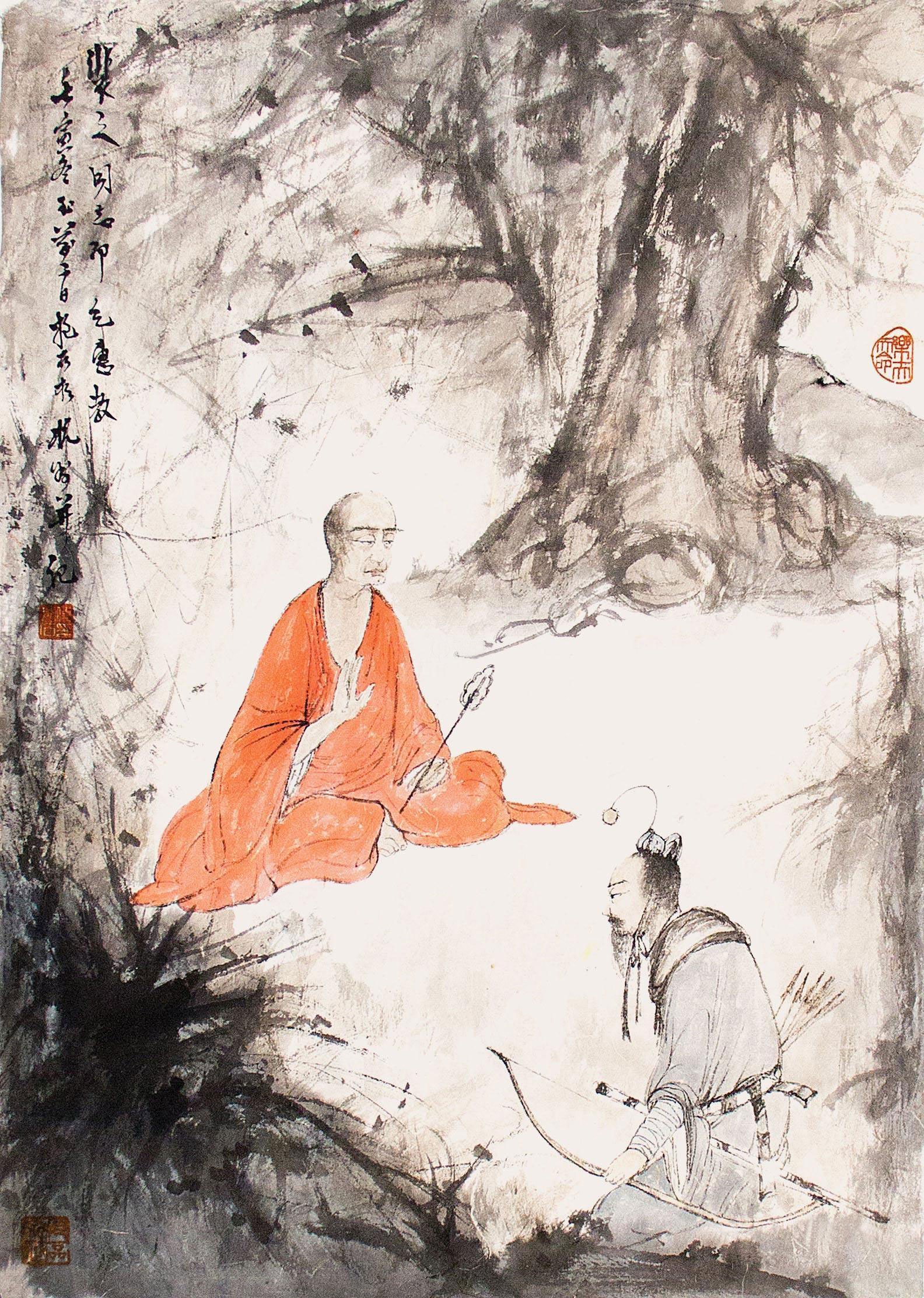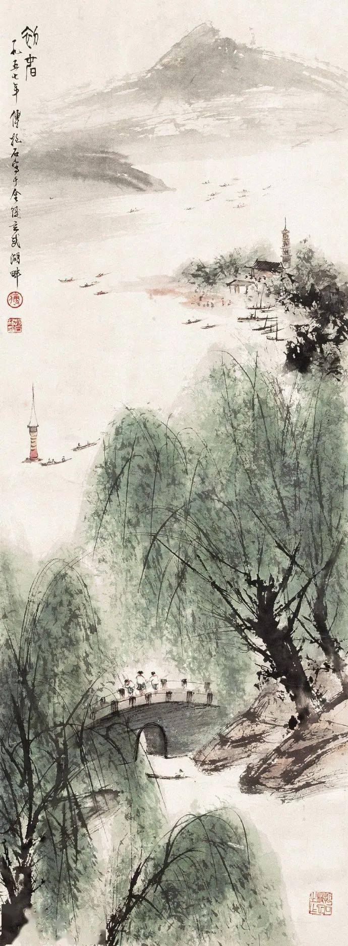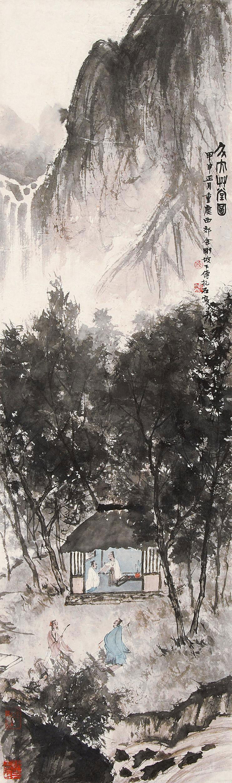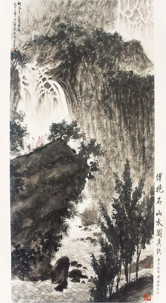 傅抱石(1904年10月5日—1965年9月29日),出生于江西南昌,祖籍江西新喻(今新余市)北岗乡樟塘村,原名长生,名中洲,字庆远,学名瑞麟,号抱石斋主人,“抱石”名字来自清代画家石涛 。中国近现代中国画家、美术史论家、书法家、美术教育家,“新山水画”代表画家。其主要绘画作品有《屈原》《江山如此多娇》《煤都壮观》《林海雪原》《天池林海》《镜泊飞泉》等。