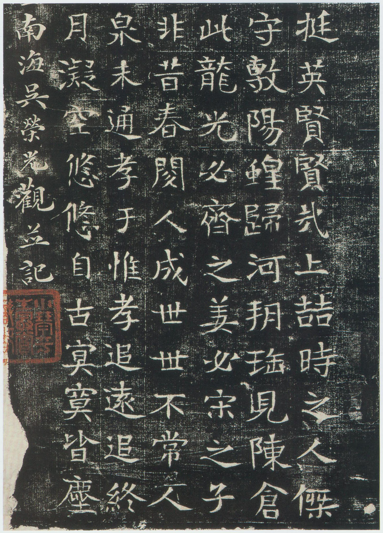 隋《巩宾墓志》,也称《巩宾暨妻陈氏墓志》,全称《周骠骑将军右光禄大夫云阳县开国男 巩君墓志铭》。撰书不祥。隋开皇十五年(公元595年)十月始平县入窆。清嘉庆二十四年(公 元1819年)四月在陕西武功之南乡出土。曾归偃师段嘉谟、渭南赵乾生、长白端方等。今人 赵万里《汉魏南北朝墓志集释》中有著录。