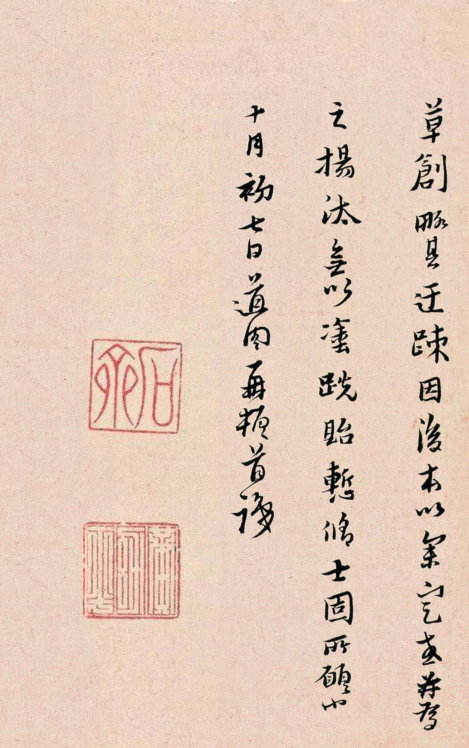 《孝经颂》款署“崇祯辛巳元冬黄道周颂并书于白云之库”后又“十月初七日再顿首识”,考,崇祯辛巳即崇祯十四年(1641年)春,黄道周仍羁于狱中。在狱中,黄道周“时时为书《孝经》以当役钱,凡手书《孝经》一百二十本,皆以狱卒持去,散尽无余。”直至崇祯十四年腊月谪戍辰阳,此篇正是狱中之作。