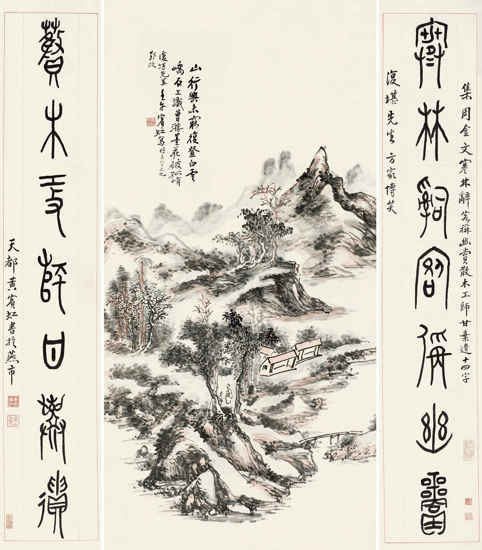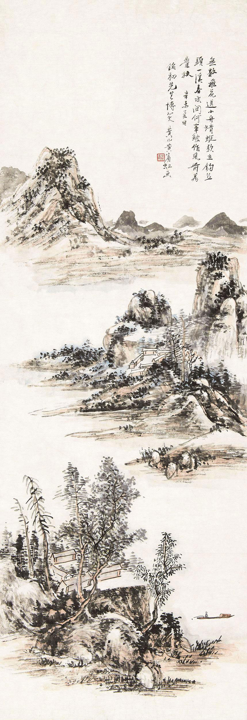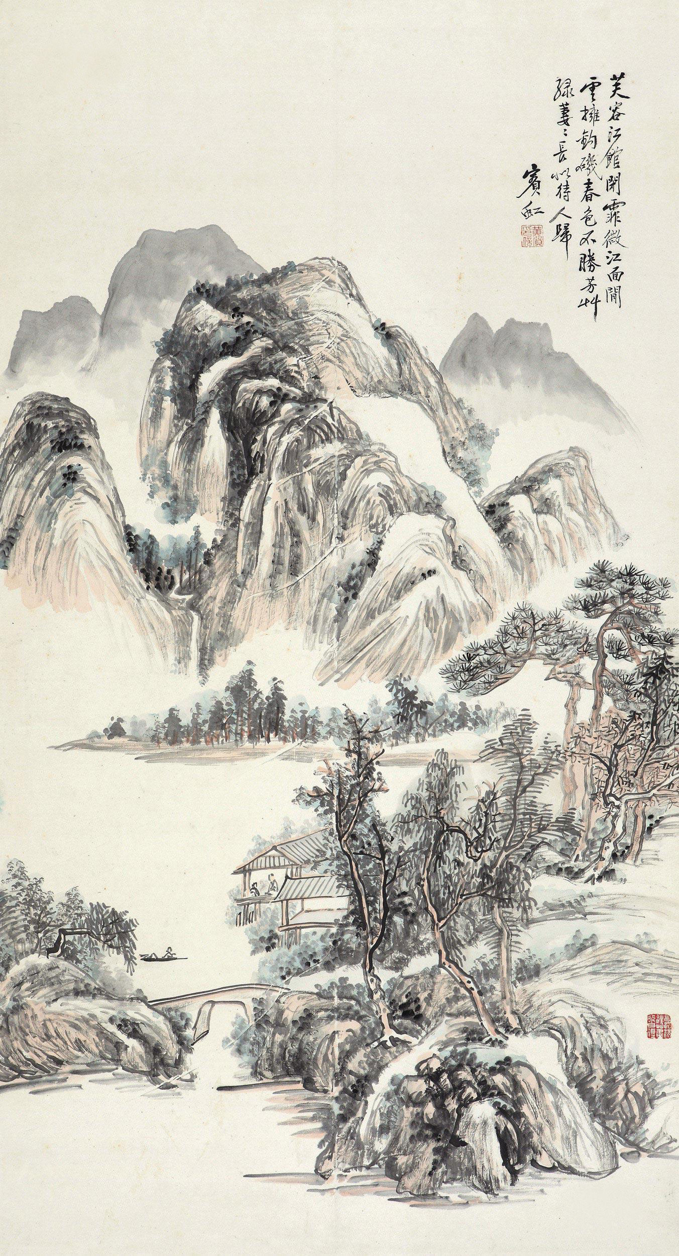 黄宾虹(1865年1月27日—1955年3月25日),原名懋质,名质,字朴存、朴岑,亦作朴丞、劈琴,号宾虹,别署予向、虹叟、黄山山中人等,原籍安徽歙县,出生于浙江金华,中国近现代国画家、书法家、篆刻家、诗人、艺术教育家 [6],与齐白石合称“南黄北齐”。主要绘画作品有《蜀江归舟图》《焦墨山水》《九子山》等;出版画册有《黄宾虹纪游画册》《黄宾虹山水画册》《黄宾虹山水画集》《黄宾虹写生画册》《黄宾虹山水写生画册》《黄宾虹画集》等;出版著作有《陶玺文字合证》《古印概论》《古籀论证》《古文字释》《古画微》《虹庐画谈》《鉴古名画论》《黄山画家源流》《画法要旨》《宾虹草堂印谱》《画学编》《宾虹杂著》《宾虹诗草》《美术丛书》《神州大观》《神州国光集》《中国名画集》等。