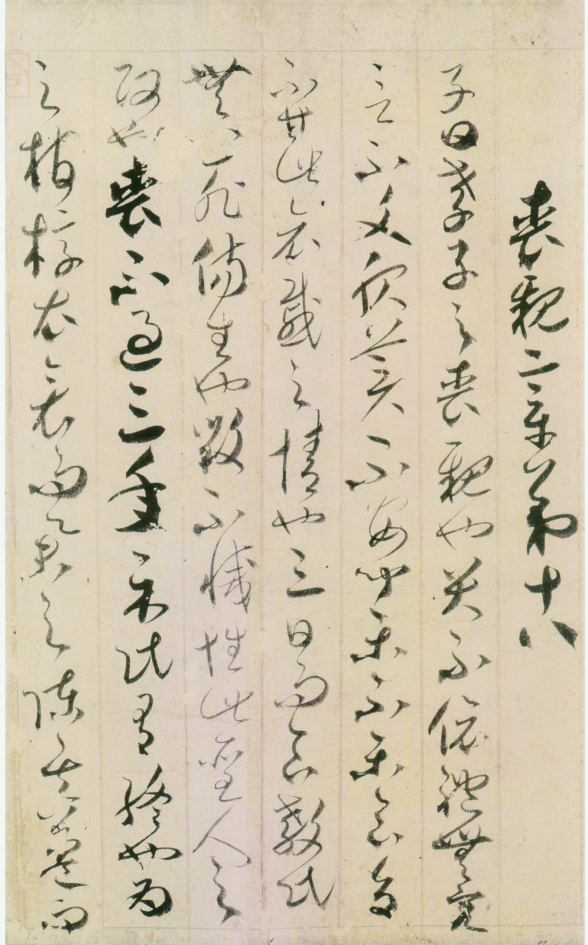 《孝经》全卷通篇略取隶意,融入章草,气息高古,点画激越,粗细相间,虚实相伴:结体左俯右仰,随势而就;章法犹如潺潺流水一贯直下,充分地体现了他那风流倜傥,狂放不羁的浪漫情怀,历来为文人学者所称誉。十七世纪后半期传入日本,明治年间由近卫家进献皇室。2006年3月13日至2006年4月26日上海博物馆举办“中日书法珍品展”,该作品首次回到祖国。