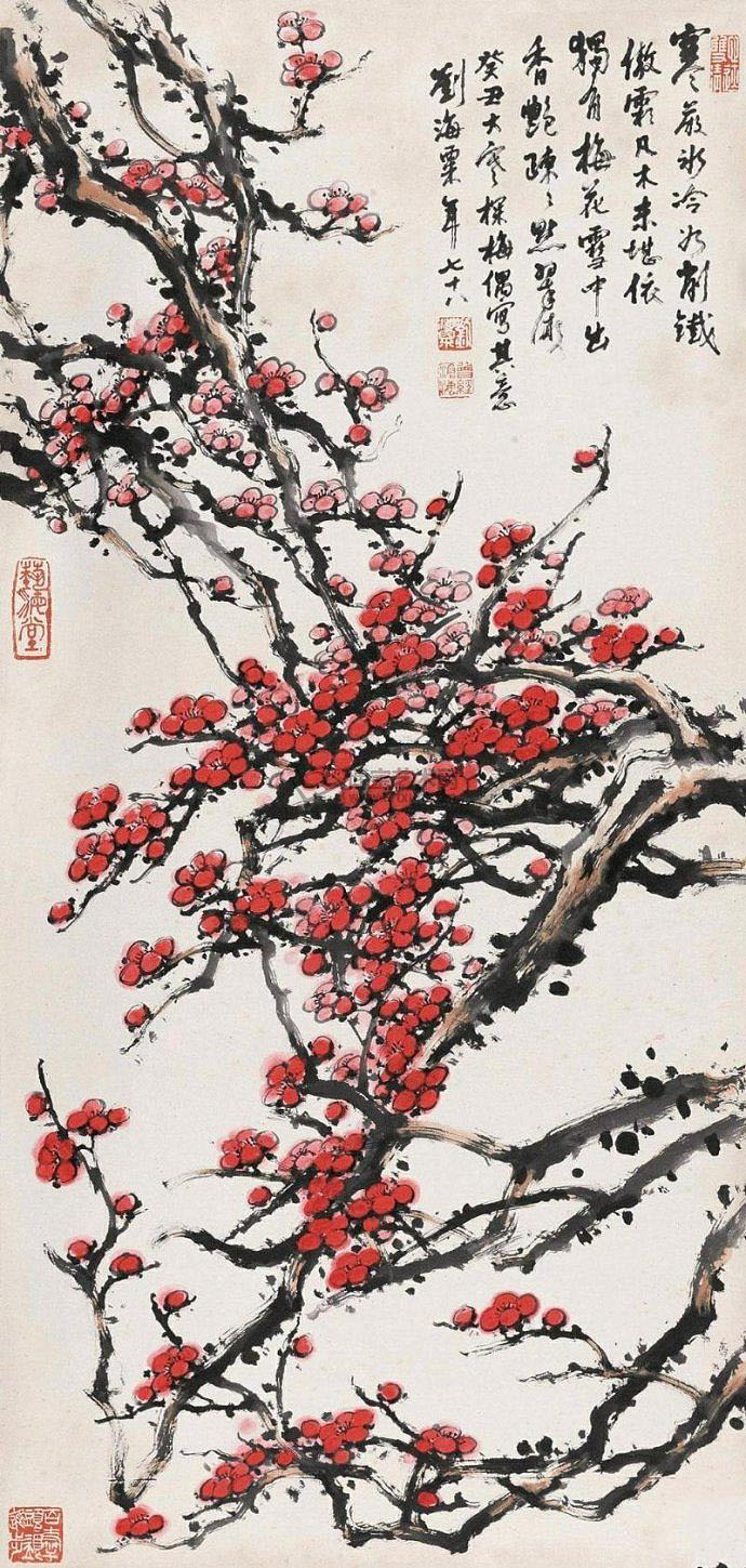 刘海粟花鸟画《梅花》21幅