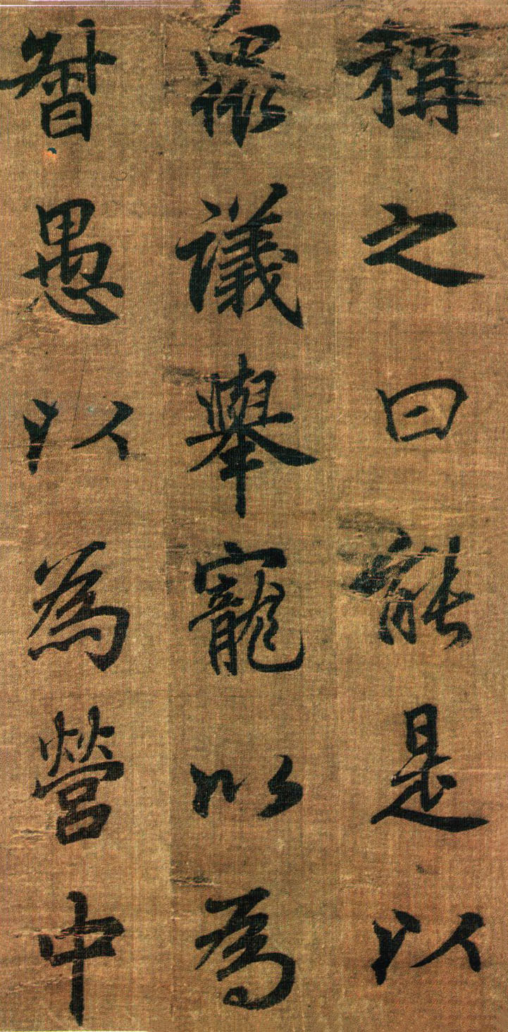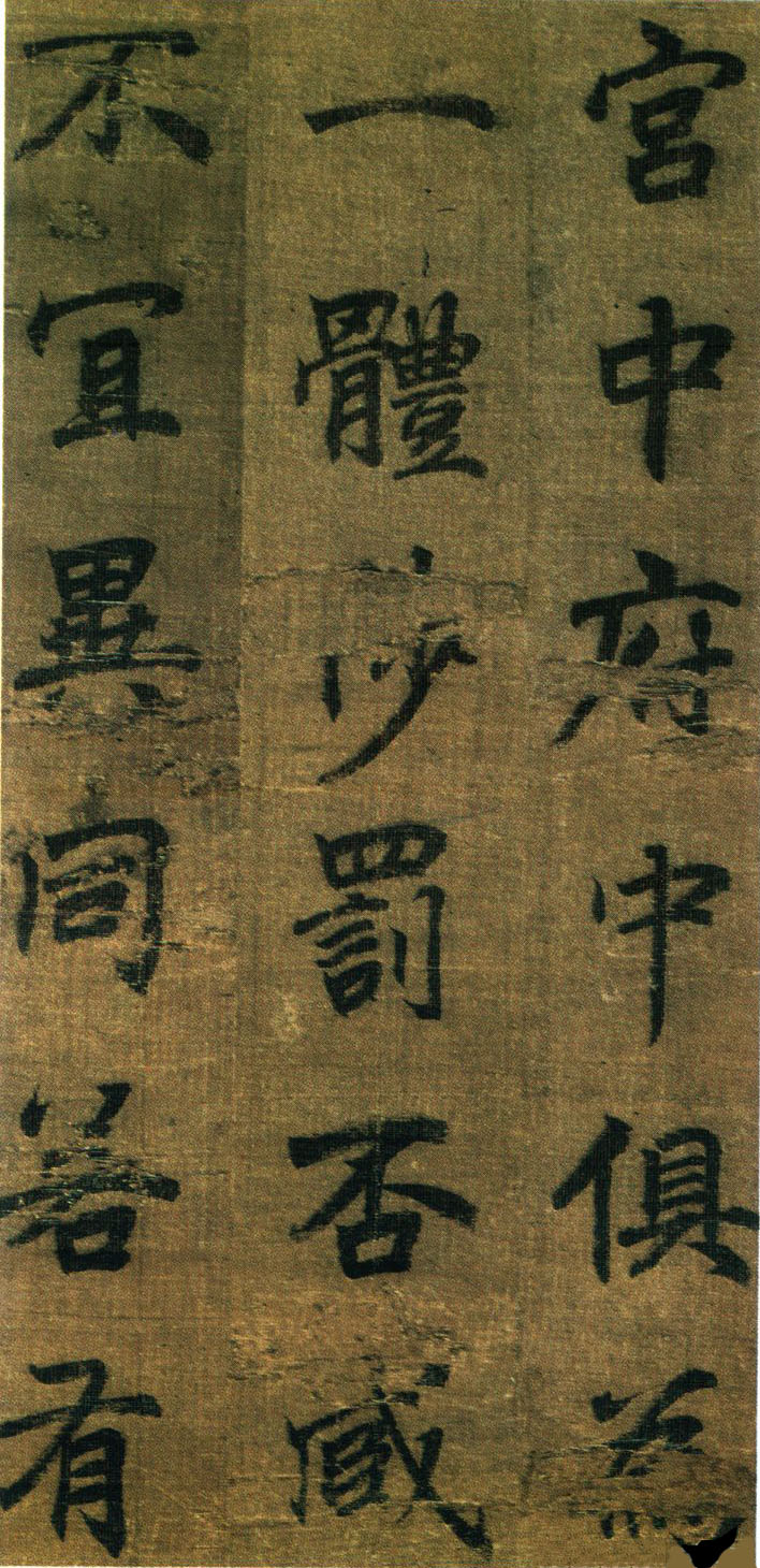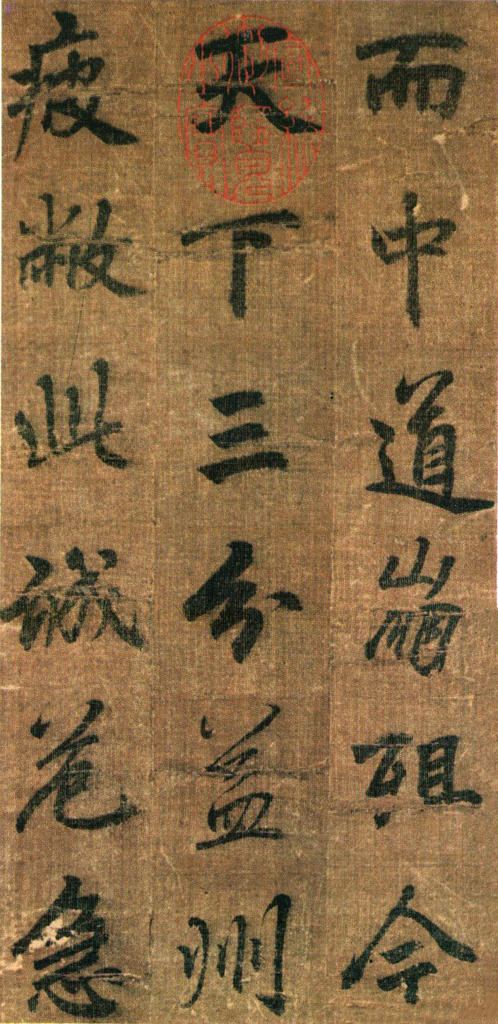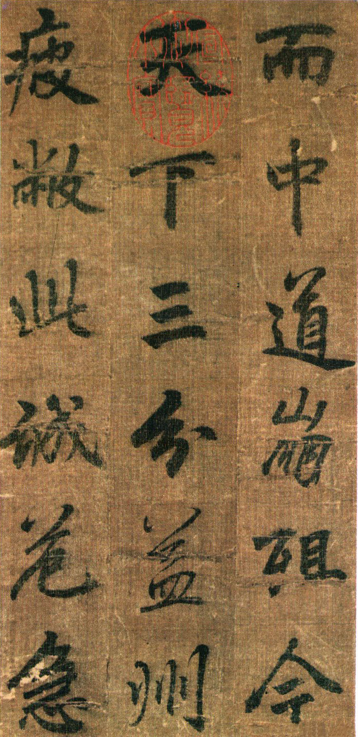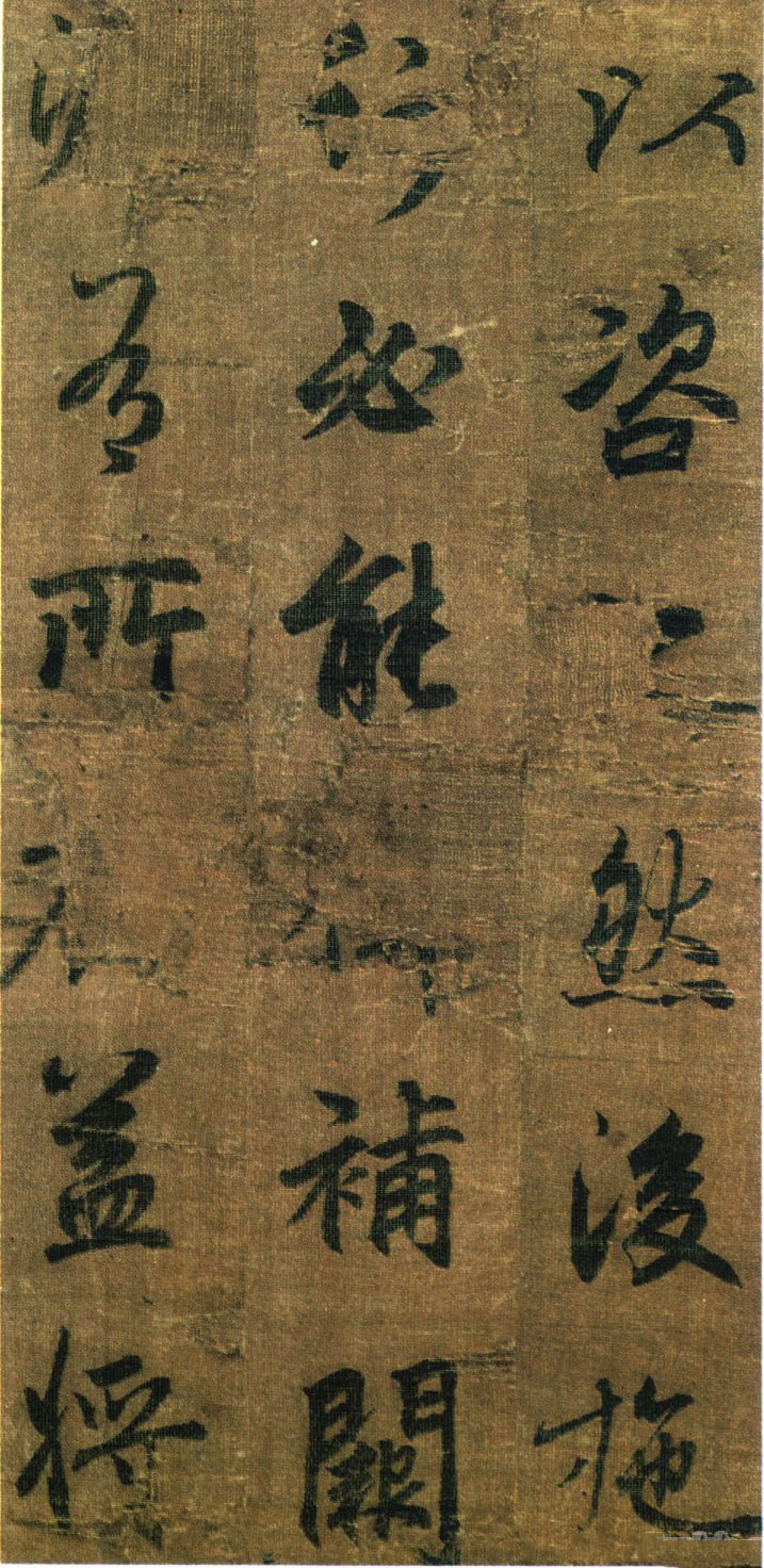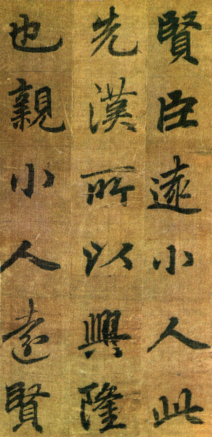 《出师表》墨迹,行书,无款绢本,割裂成册。原本今藏台湾故宫博物院,前有嘉庆御览之宝,宣统御览之宝,石渠宝笈等印,后半及署款皆残缺,书者名不可考,书势似李邕,清《滋蕙堂帖》曾刻,直署为李北海书,近人王壮为编入《中国书画》定为真迹。此册不见宋明著录,落笔结字庄峻有法,较《四言古诗卷》为优,以李书《法华寺》,《李思训》等碑较之,神韵若合。然有一二未惬意之笔,若非邕书,当为学邕书之善者。