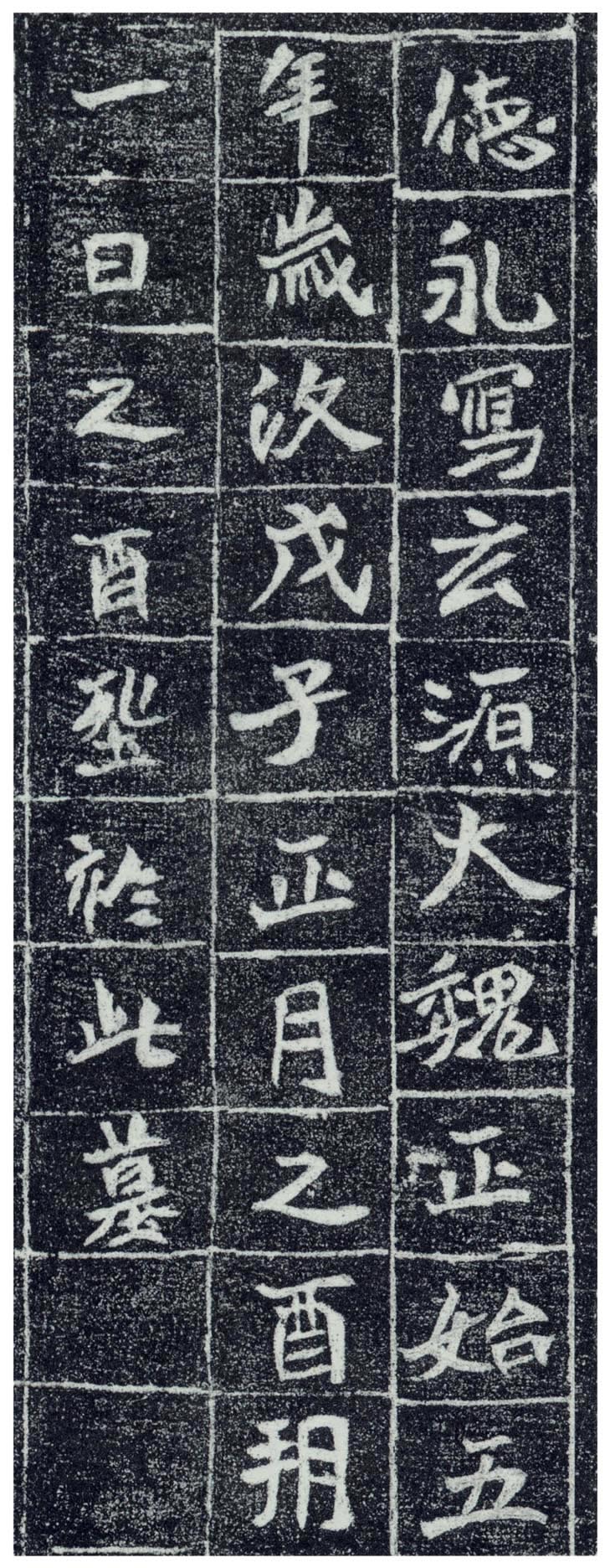 北魏《李瞻墓志》,《李瞻墓志》全称《儒德李生之墓铭》刻于北魏正始五年(五零八)正月,墓志为覆斗形状,石高三十六点五厘米,宽四十三厘米,字面高二十九厘米,宽三十六点五厘米,正书十六行,行十五字,有棋盘格,二零零零年出土于河北赞皇。