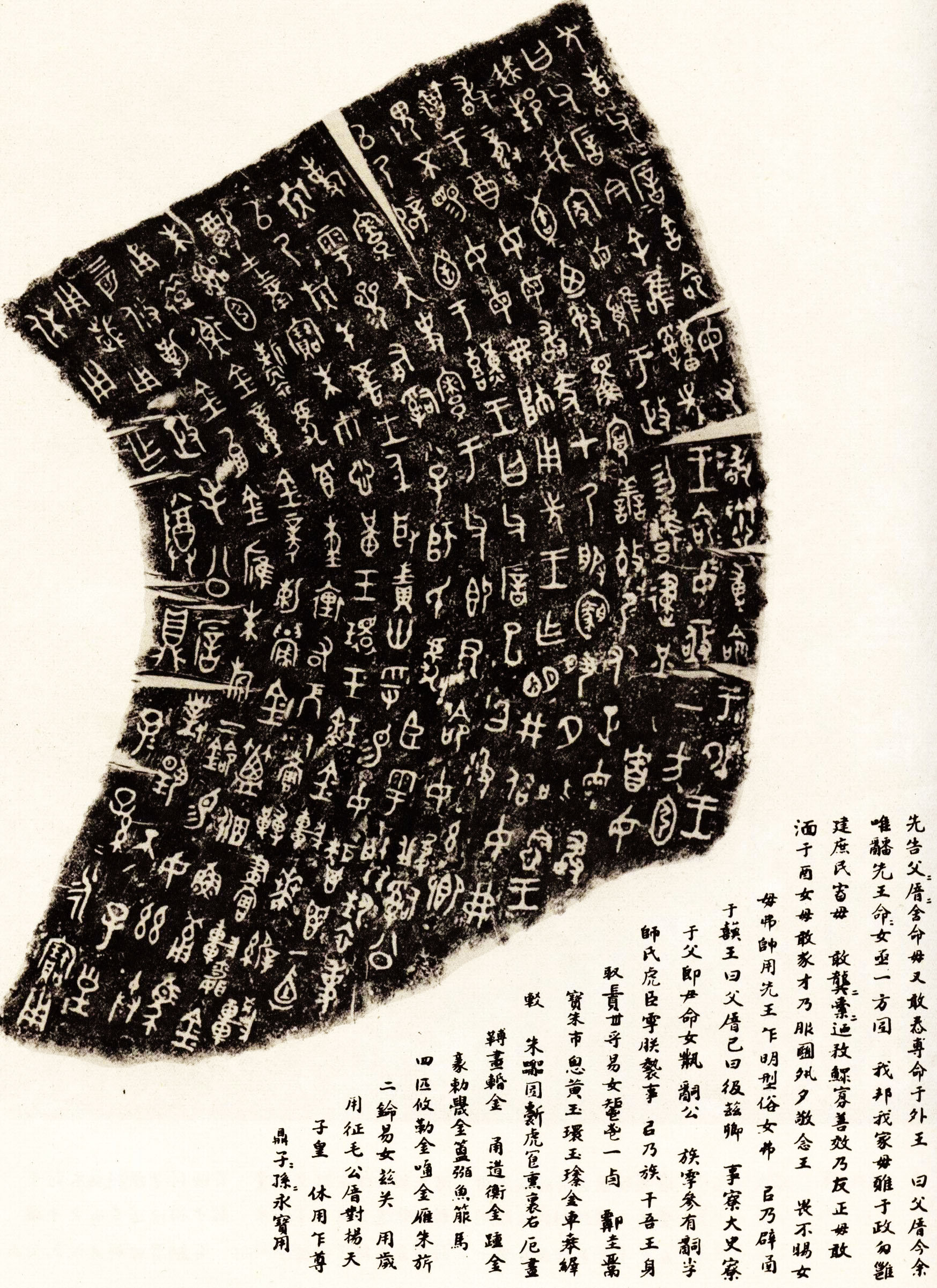 这是一篇典型的西周册命铭文,但不拘泥于传统的册命体例,分五段,各段均为“王若曰”起,显然是出自当时(周成王时,公元前1115-1079年)史官之手。全铭文辞精妙而完整,古奥艰深,是西周散文的代表作,例如文章的第一段: