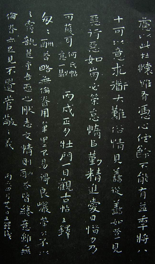 《拟山园帖》,共十卷,清代个人丛帖。清顺治八年至十六年(公元1651-1659年)王铎之子无咎撰集,古燕吕昌摹,张翱镌。帖名行书。此帖全刻王铎一家之书,共103种,其中大多为临古之书。王无咎传留大量的王铎书迹,因而所选皆精湛。刻者亦一时名手,而其它王书刻帖均不如此本为佳,帖后有张缙彦、龚鼎孽及无咎题跋。张缙彦跋曰:“文安公书法妙天下,?毛泰史括所藏书及墨苑家所流传汇集此本,有缺略模糊必求别本正字补之,备极龙跃虎卧猊攫象搏之致,文安四十年精力尽在此矣。近代玄宰、子愿两先生戏鸿、来禽二帖坛?海内,昔卫夫人见右军书叹:"此子必掩我名",此本出,惜两公不及见也。”故此帖无论是所选之帖还是摹刻方面,都极为精妙,远胜琅华、银湾诗酒论二十等帖。