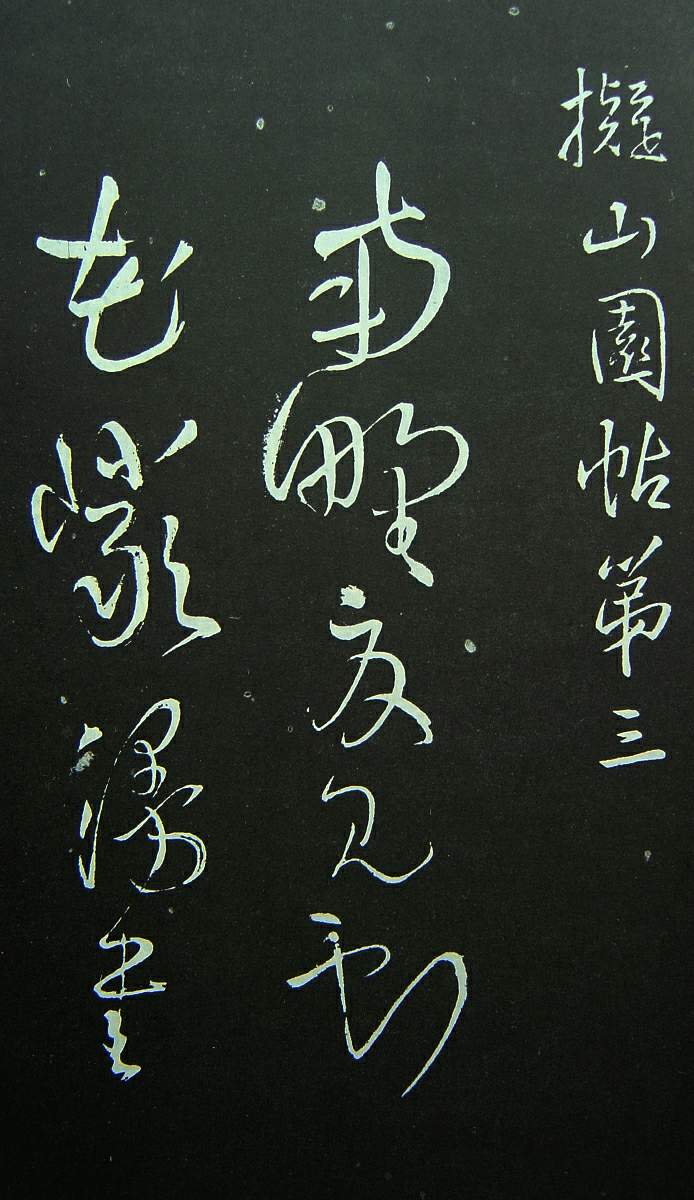 《拟山园帖》,共十卷,清代个人丛帖。清顺治八年至十六年(公元1651-1659年)王铎之子无咎撰集,古燕吕昌摹,张翱镌。帖名行书。此帖全刻王铎一家之书,共103种,其中大多为临古之书。王无咎传留大量的王铎书迹,因而所选皆精湛。刻者亦一时名手,而其它王书刻帖均不如此本为佳,帖后有张缙彦、龚鼎孽及无咎题跋。张缙彦跋曰:“文安公书法妙天下,?毛泰史括所藏书及墨苑家所流传汇集此本,有缺略模糊必求别本正字补之,备极龙跃虎卧猊攫象搏之致,文安四十年精力尽在此矣。近代玄宰、子愿两先生戏鸿、来禽二帖坛?海内,昔卫夫人见右军书叹:"此子必掩我名",此本出,惜两公不及见也。”故此帖无论是所选之帖还是摹刻方面,都极为精妙,远胜琅华、银湾诗酒论二十等帖。