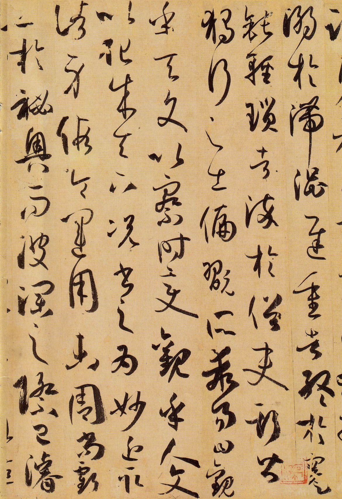 同;留不常迟,遣不恒疾;带燥方润,将浓遂枯;泯规矩于方圆,遁钩绳之曲直;乍显乍晦,若行若藏;穷变态于毫端,合情调于纸上;无间心手,忘怀楷则;自可背羲献而无失,违钟张而尚工。譬夫绛