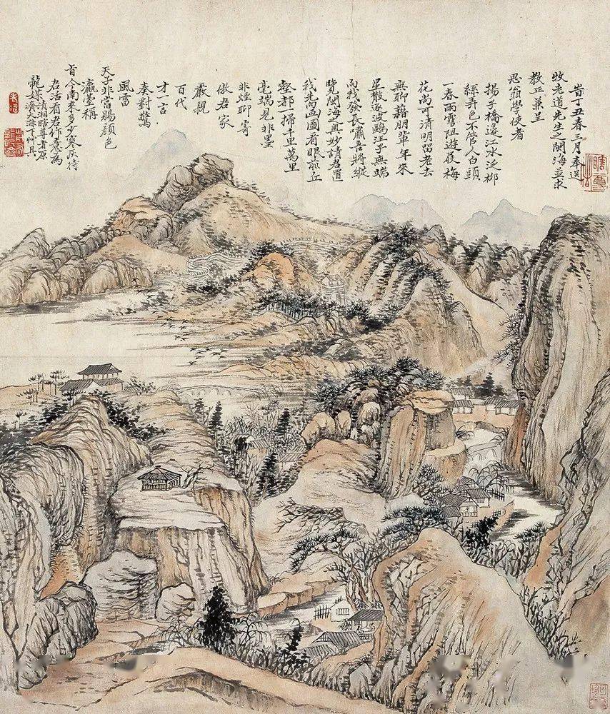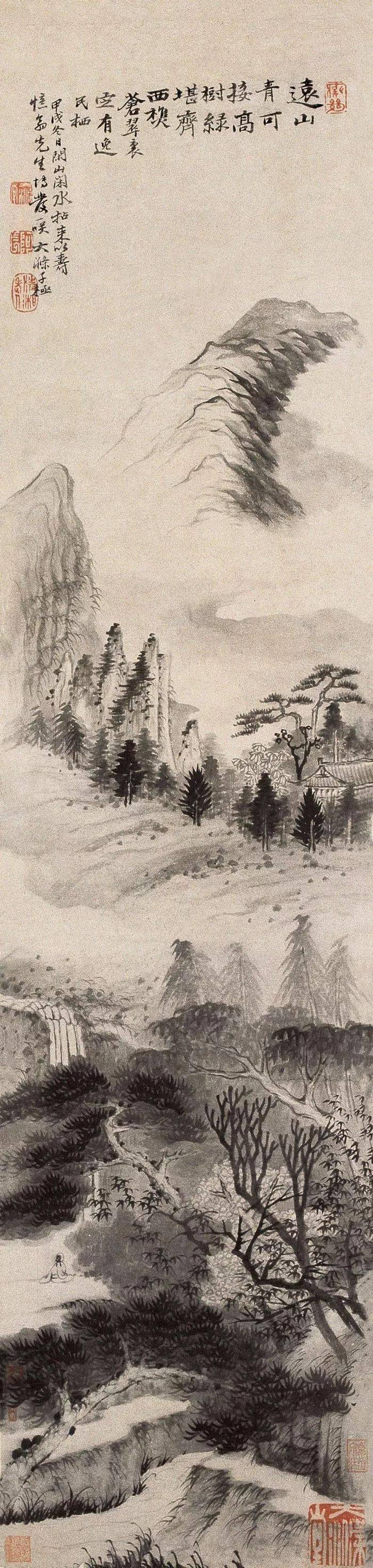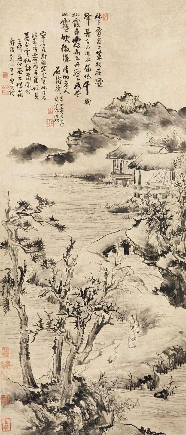 石涛(1642年-1707年)明末清初画家,俗姓朱,名若极,小字阿长,僧名元济,一作原济,别号石涛,大涤子、钝根、石道人、苦瓜和尚、瞎尊者、清湘陈人、清湘老人、清湘遗人、零丁老人, [7]广西全州(今全县)人,明靖江王朱亨嘉之子。明亡之际出家为僧,与弘仁、髡残、朱耷合称“明末四僧”。 [1]石涛是中国绘画史上一位十分重要的人物,他既是绘画实践的探索者、革新者,又是艺术理论家。晚年定居扬州,并在此潜心创作直至逝世。