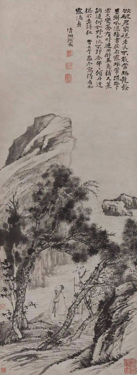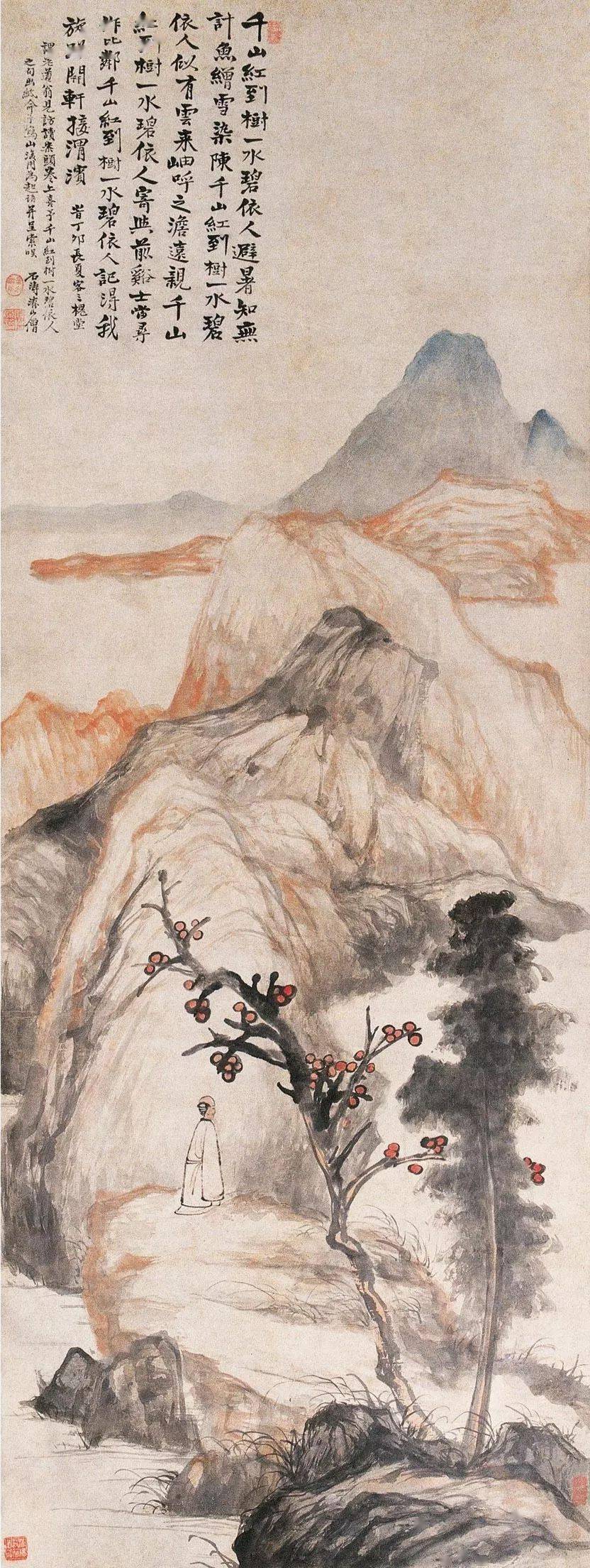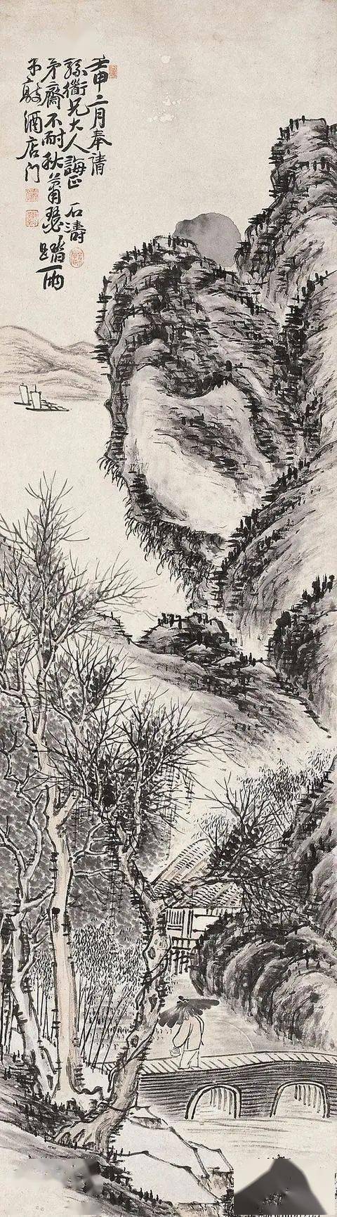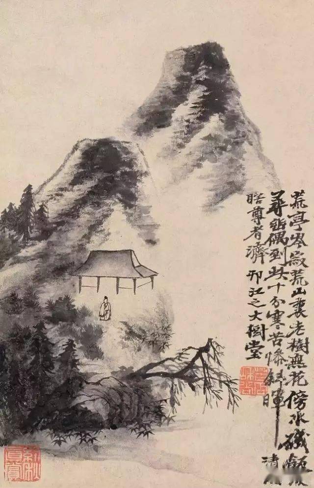 石涛幼年遭变后出家为僧,驻锡于安徽宣城敬亭山广教寺,后半世云游,以卖画为业。早年山水师法宋元诸家,画风疏秀明洁,晚年用笔纵肆,墨法淋漓,独创“万点恶墨”技法和截断式构图,尤精册页小品;花卉潇洒隽朗,天真烂漫,清气袭人;人物生拙古朴,别具一格。工书法,小楷深得钟繇精髓,所书《道德经》全卷五千余字现存台北故宫;能诗文。存世作品有《石涛罗汉百开册页》《搜尽奇峰打草稿图》《山水清音图》《竹石图》《墨梅册》等。著有《苦瓜和尚画语录》,提出“一画论”“搜尽奇峰打草稿”“笔墨当随时代”等理论。