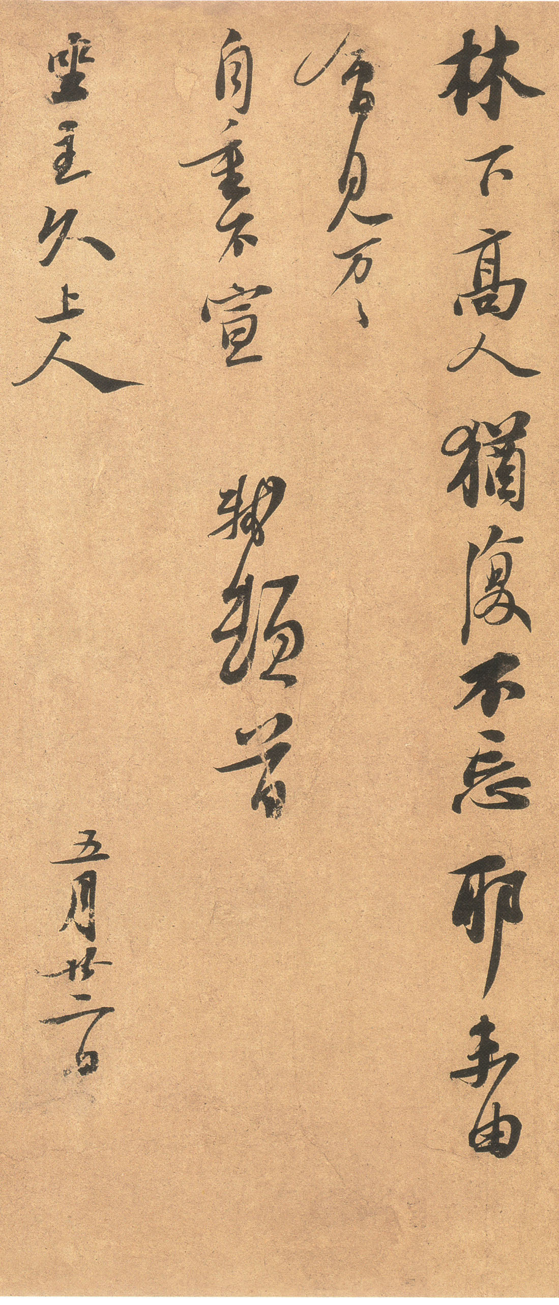 释文 轼启。辱书,承法体安隐,甚慰想念。北游五年,尘垢所蒙,已化为俗吏矣。不知林下高人犹复不忘耶!未由会见,万万自重。不宣。轼顿首,坐主久上人。五月廿二日。