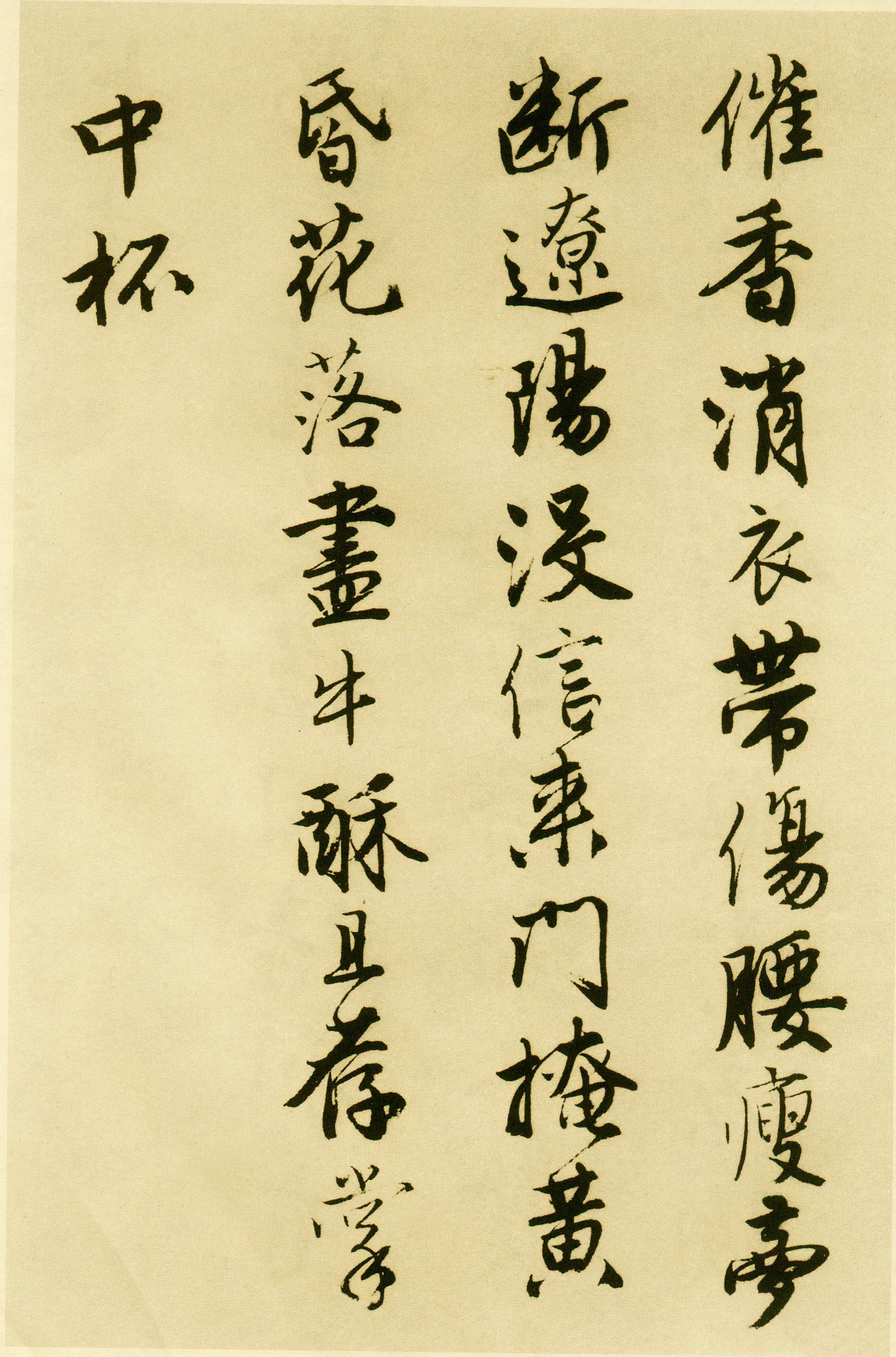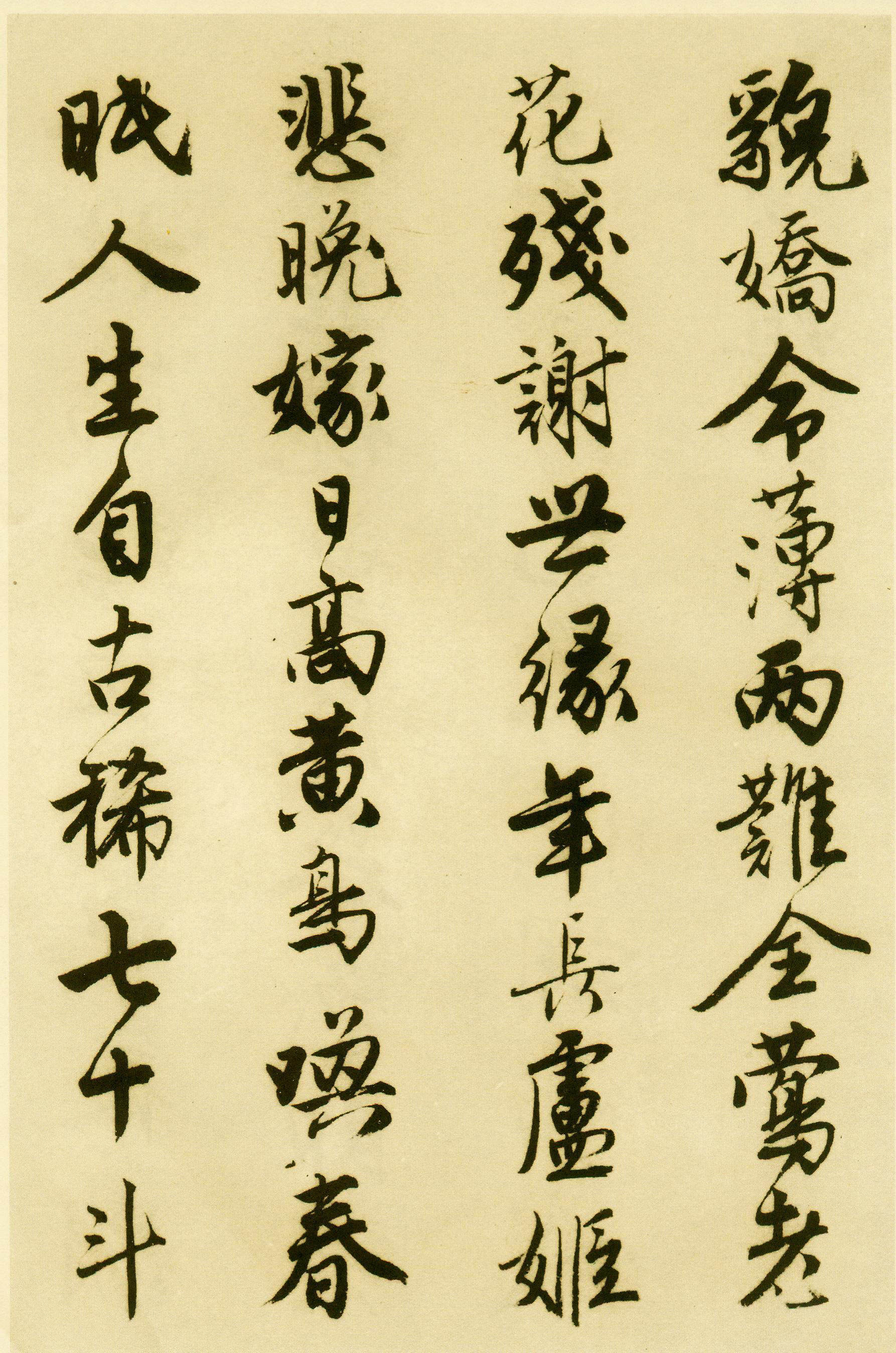 沈周因丧子而撰写落花七律十首,此为唐寅和之《落花诗册》共30首。他看到地上落英满布,联系起自己的坎坷遭遇,怅然不已,抒发了心中愤慨之作。此幅《落花诗》是唐寅传世的书法代表作之之,当为其较早所书,用笔圆转妍美,玉骨丰肌,风流潇酒,温文尔雅。