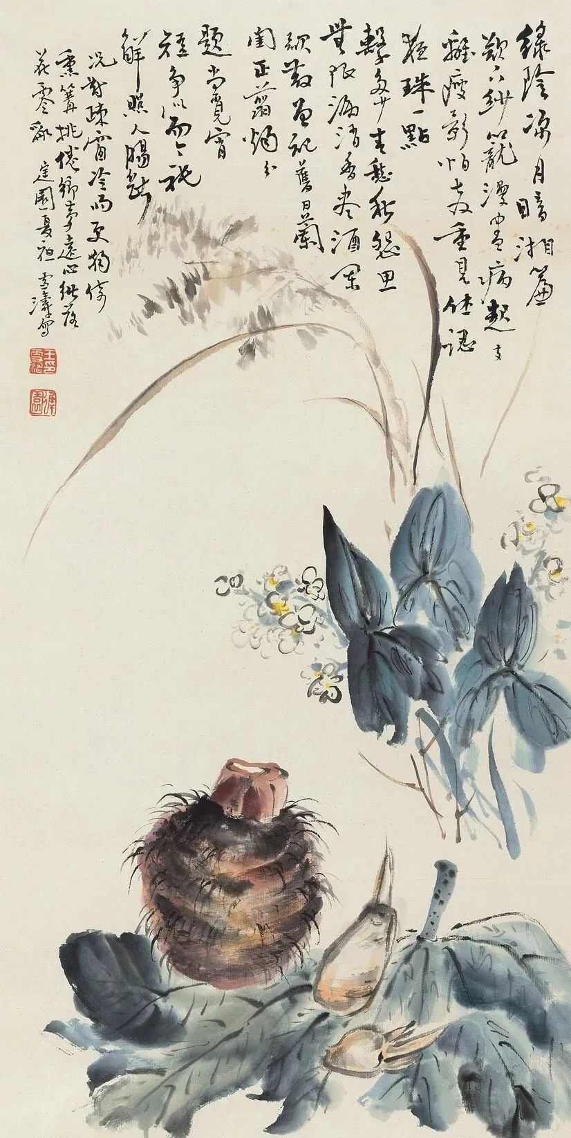 王雪涛于1926年毕业于国立北平艺术专科学校;1929年,任京华美术专科学校教授;1931年,与王梦白合作创作作品《鸲鹆梧桐图》,另创作作品《百鸟图卷》等;1940年,创作作品《夜读图》《秀竹秋虫》等。 1948年,创作作品《十二属相图》《雪梅鸡觅》《桃花山鸡》等;1951年,与齐白石、陈半丁、于非闇等合作创作作品《普天同庆》;1956年4月,增选为中国美术家协会理事;1958年,创作作品《牵牛豆花》等;1961年,创作作品《铁线莲》《丽江山花》;1965年,创作作品《山茶寒鹊》《藤萝群鸡》;1975年,创作作品《花蝶》《豆花》等;1978年,任北京画院院长;1980年,任中国美术家协会北京分会副主席;1981年,作品《禽鸟八条幅》参加首届北京画院与日本南画院联展,另创作作品《临风索侣》《墨笔石榴》《紫滕八哥》等;1982年11月24日,在北京逝世,享年79岁。