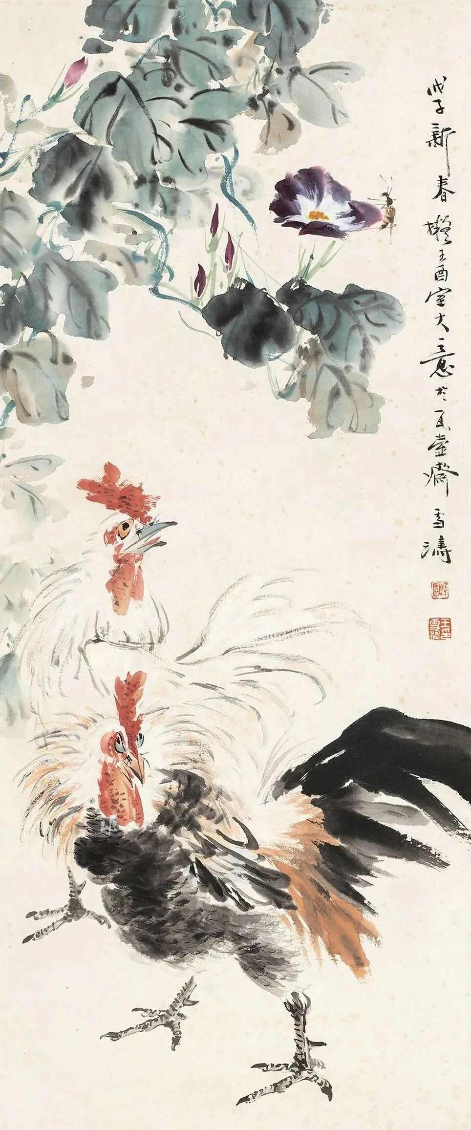 王雪涛(1903年12月31日—1982年11月24日),出生于河北成安,原名王庭钧,字晓封,号迟园,中国农工民主党党员,中国近现代花鸟画家,其主要绘画作品有《群鸡图》《万紫千红》《百花齐放》《四季花鸟》《报喜图》等,出版有《王雪涛画辑》《王雪涛画谱》《王雪涛的花鸟画》等。