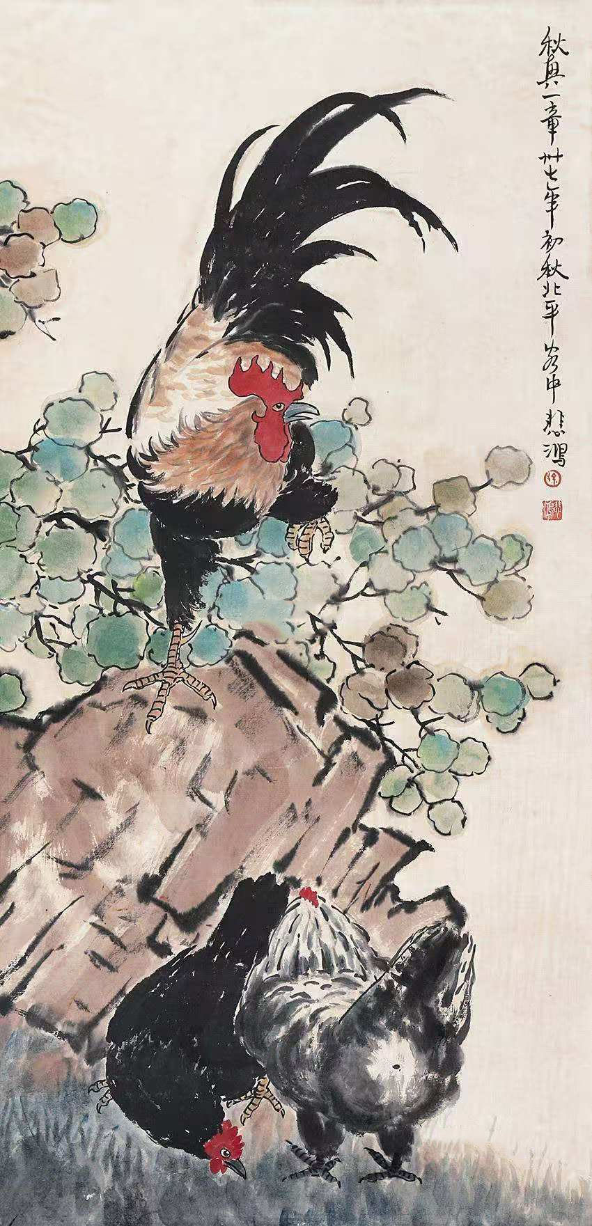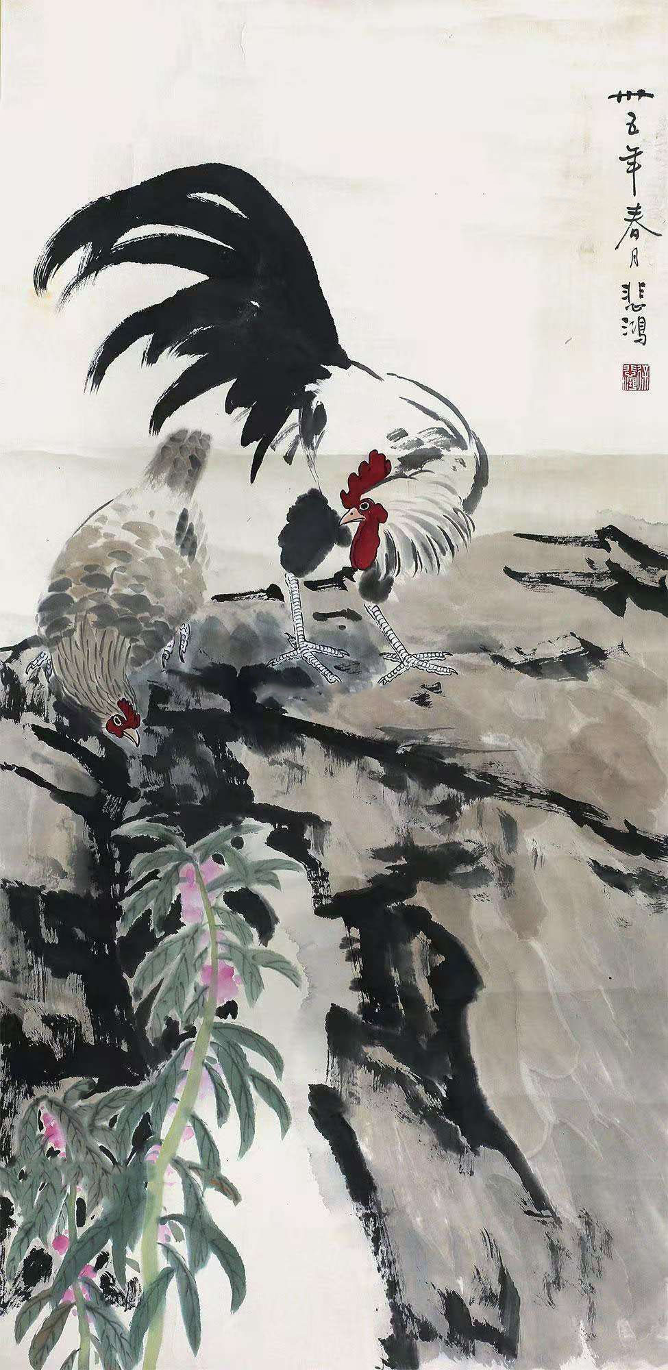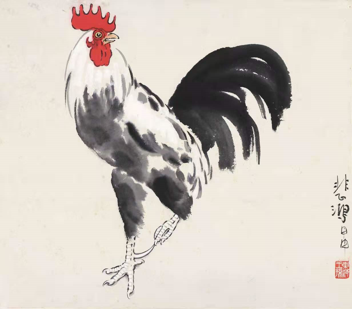 徐悲鸿花鸟画《公鸡》54幅