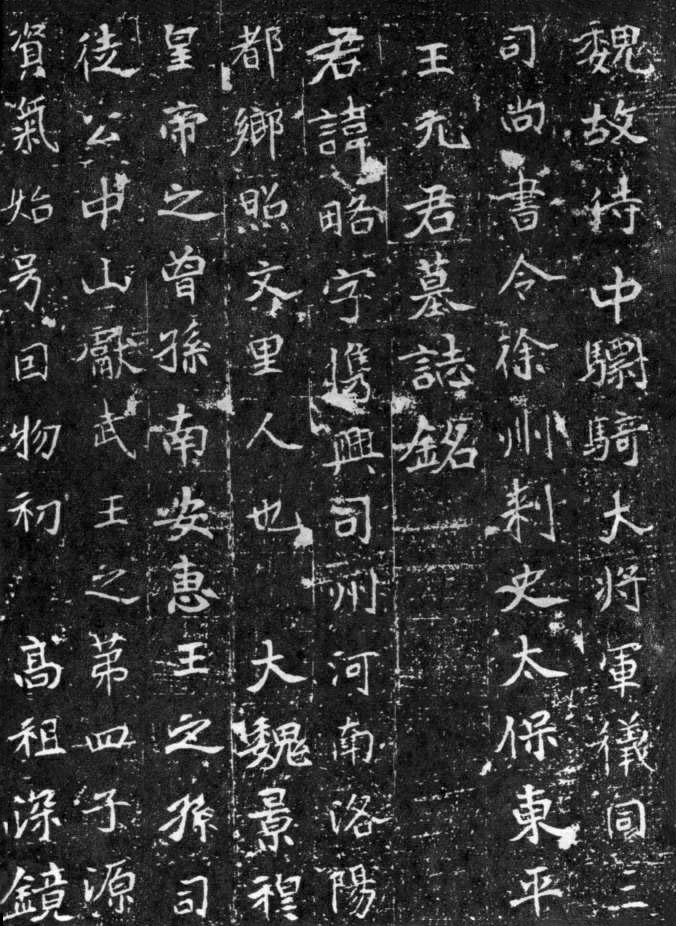 【铭文】:魏故侍中骠骑大将军仪同三司尚书令徐州刺史太保东平王元君墓志铭
