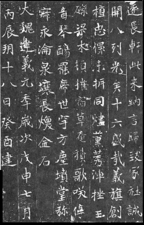 鶺鴒怀感,丧乱未申,岐肆北海,君寓东泯。绩高双化,才富二邻,前徽洛渚,后曜江滨。越声兴叹,秦音独欸,首丘斯遂,长轩此来。纳言归致,冢社诚开,八列光矣,十六盛哉。义旗创植,忠儇未析,同烬熏莠,浑挫玉砾。梁木顿摧,宿草奄积,歌笑停音,琴觞罢席。世宇方尘,坟堂弥寂,永沦泉壤,长焕金石。