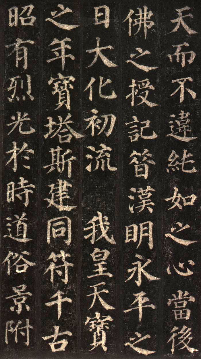 《多宝塔碑》,全称《大唐西京千福寺多宝塔感应碑》,唐天宝十一年(752)立。原在唐长安安定坊千福寺,宋代移陈西安碑林(图 1)。高285厘米,宽 102厘米,文34行,行66字。岑勋撰文,颜真卿正书书册,徐浩隶书题额,史华刊石。