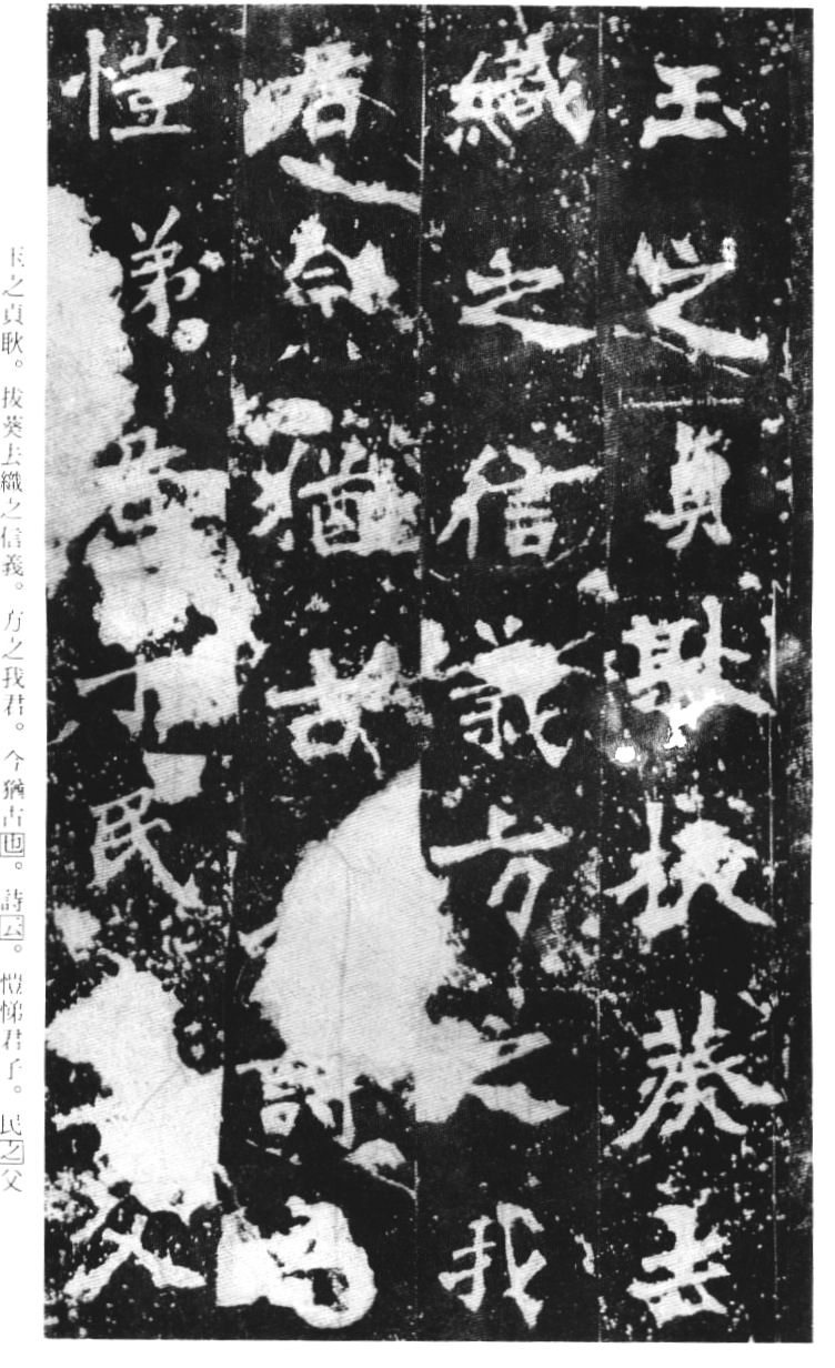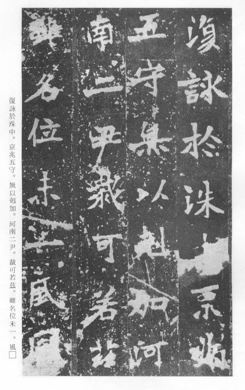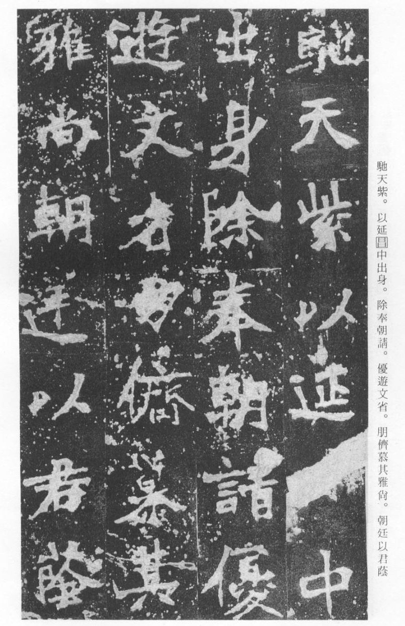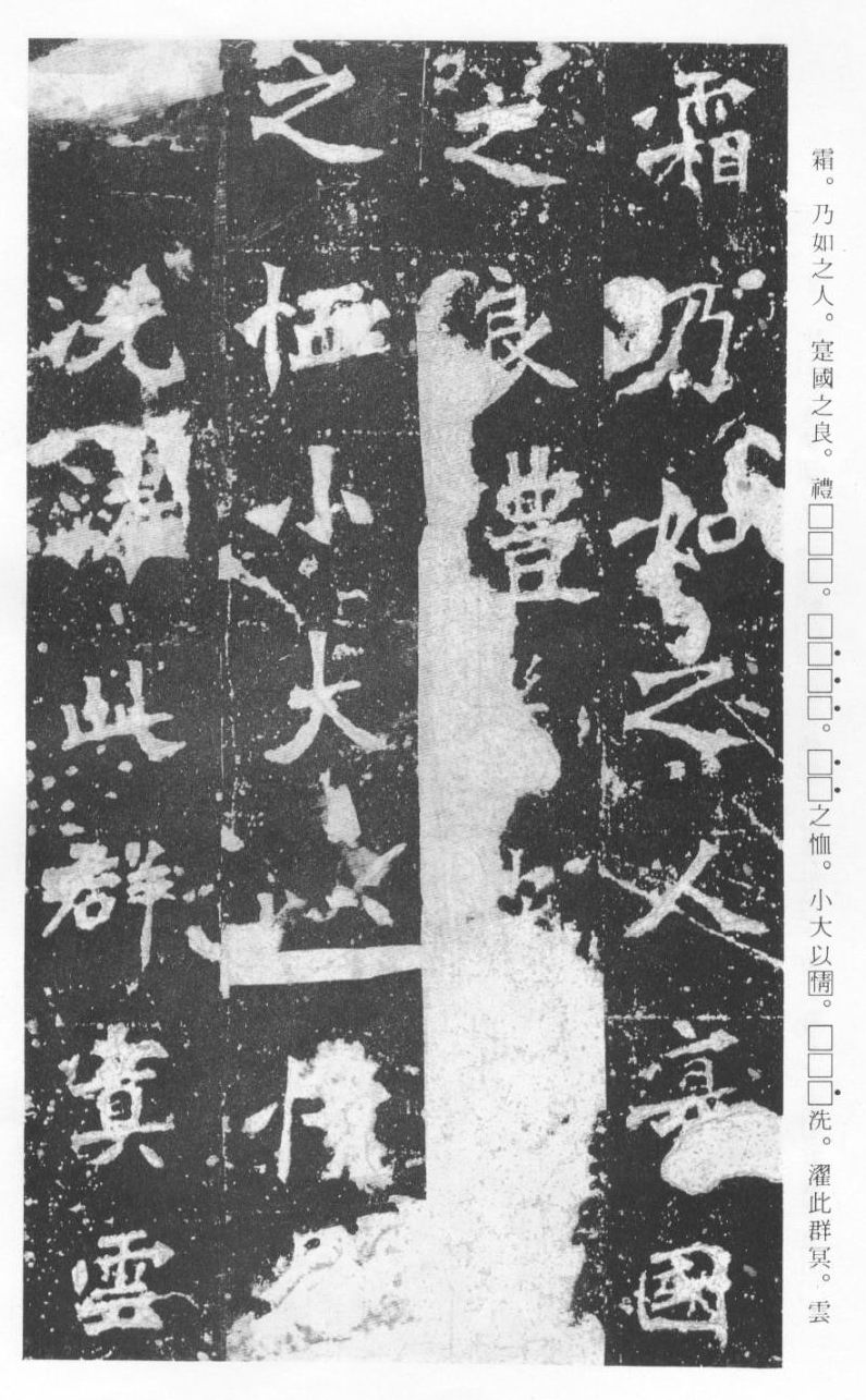 《张猛龙清颂碑》立于北魏孝明帝正光三年(五二二),全称《魏鲁郡太守张府君清颂之碑》,现在山东曲阜孔庙中,有额有阴,碑文记颂魏鲁郡太守张猛龙兴办学校功绩,碑阴为题名,古人评价其书“正法虬已开欧虞之门户”,向被世人誉为“魏碑第一”。楷书二十六行,行四十六字,是魏碑后期佳作之一。碑文书法用笔方圆并用,结字长方,笔画虽属横平竖直,但不乏变化,自然合度,妍丽多姿。碑文中的“冬温夏清”四字被认为是鉴别有关张猛龙碑古拓、今拓、原拓、翻拓的重要依据。据说有些古人拓碑,每拓一次之后就要把原碑上的某字去掉一点或留下某种印记,使后人之拓永远不能与前人之拓相雷同相媲美,更不用说伪造作假了,可见古人用心之良苦。