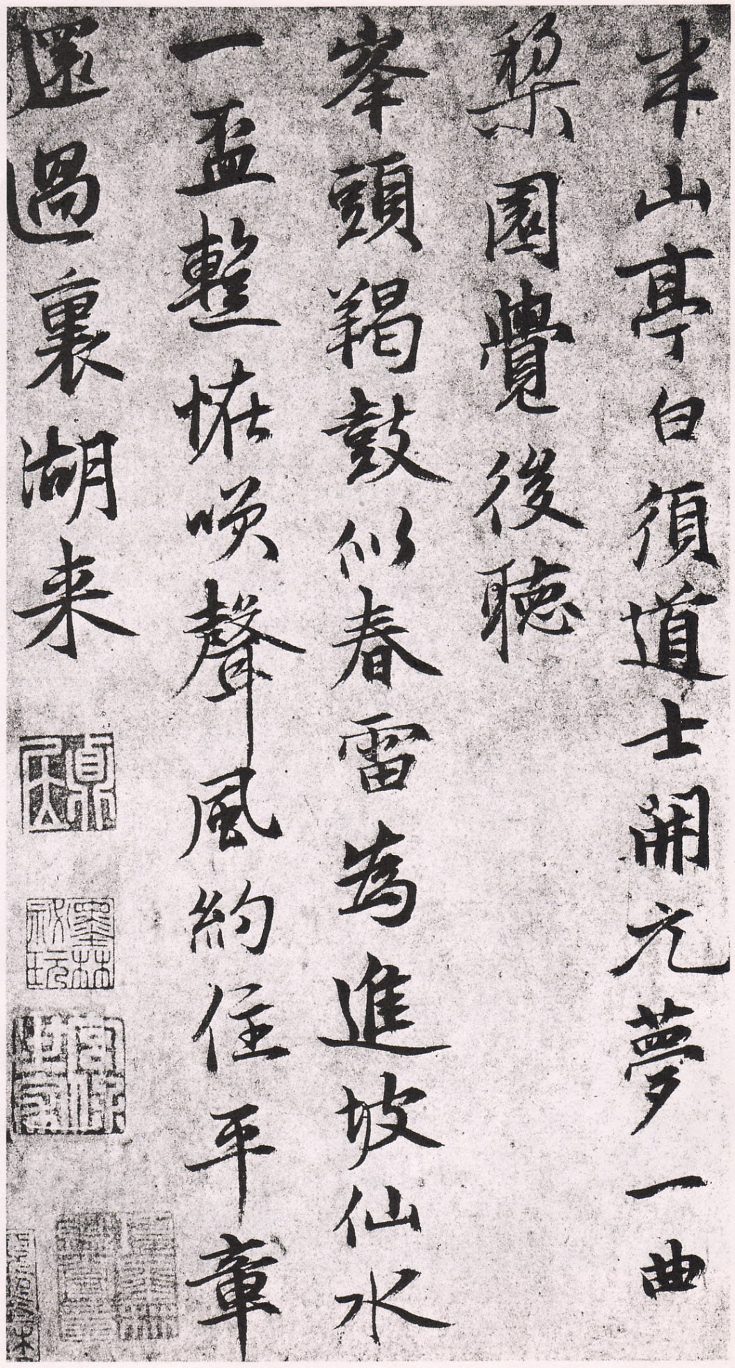 【释文】:里社按乐于寿星院。奉陪山居牧山二兄。载酒劳之。因成二绝句以写事寓怀。并发蜕庵兄一笑。张雨。借得中峰半日晴。乐声引到半山亭。白须道士开元梦。一曲梨园觉后听。峰头羯鼓似春雷。为进坡仙水一盃。暂怪笑声风约住。平章还过里湖来。