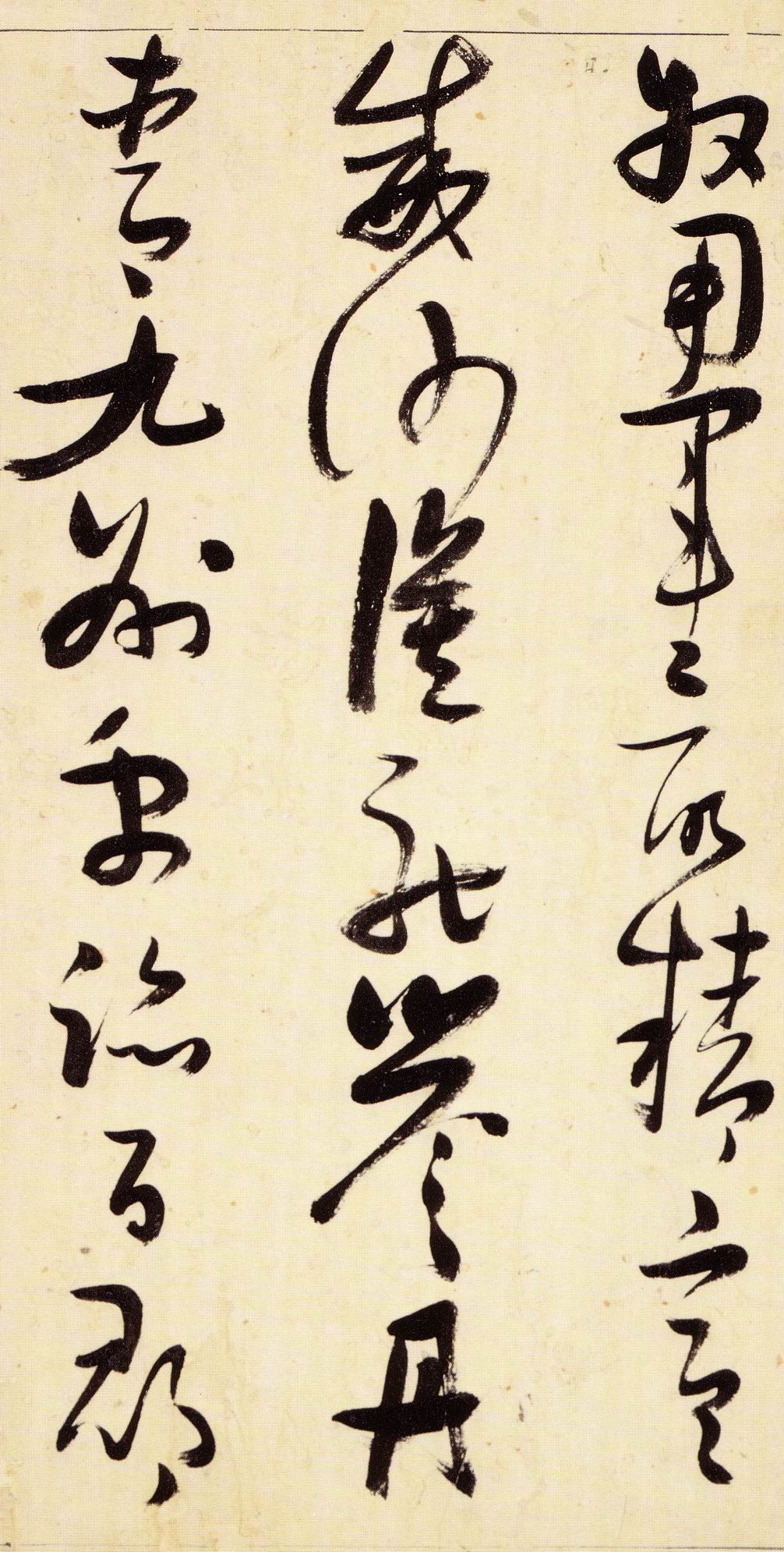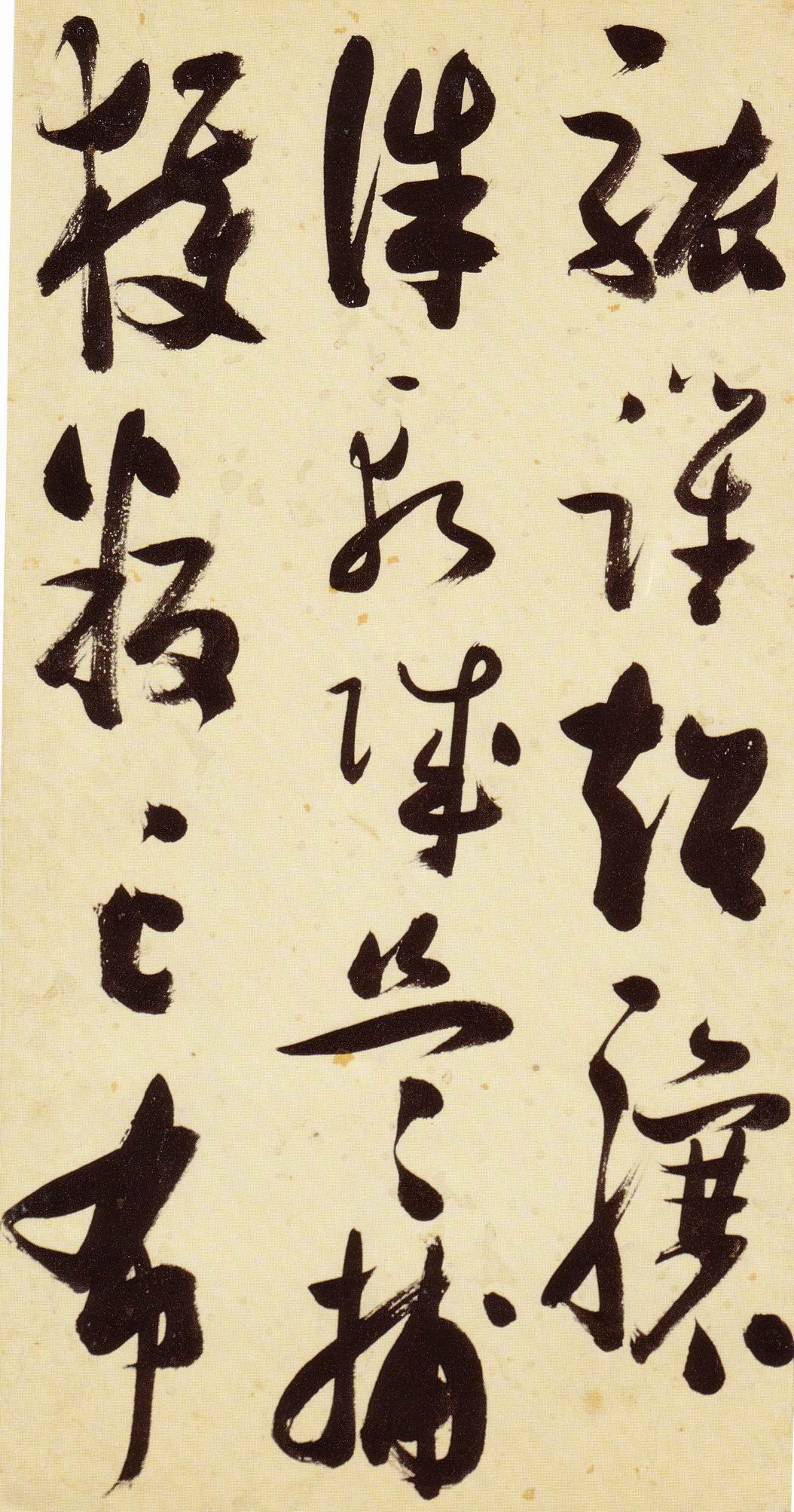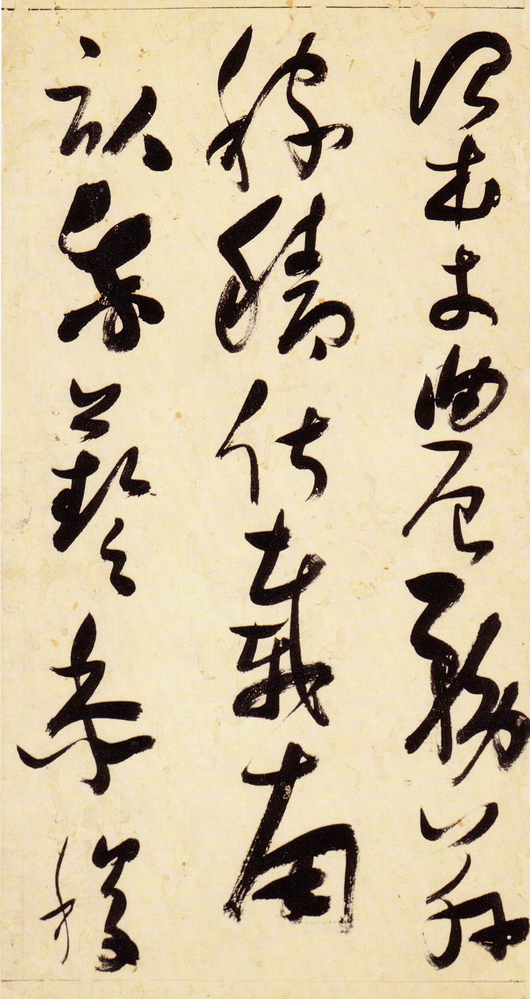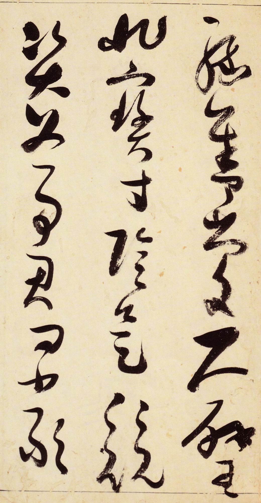 张瑞图《草书千字文》卷 天启三年(1623) 此卷末署款“天啟癸亥书於都中,张长公瑞图。”天啟癸亥三年(1623年) 时,张在京任职,尚未入内阁,此卷為五十四岁所书,风格已趋成熟,然仍保留学孙 过庭和苏軾的某些笔法。全篇字与字之间连笔下多,而运笔之气贯通,以显示其放 逸之势:各字大小变化下大,主要靠结体的欹侧反正、紧密开张、左右轻重、上下 错落,来显现起伏跌宕:字姿呈方形的整体结构,又时出奇险之态,点画通过粗细、 乾溼、疏密、方圆的变化,表现出跳荡之势;全幅呈字距紧密、行距宽疏的布局,然 紧密字距中,时用舒缓的笔法和揖让的结体来调节,宽疏行距中,又时以出格之字 和破直之势来调节,从而达到了密而不窒、疏而不空的效果。这些都体现了张瑞图 典型书风的主要特色。然此卷笔法多用圆润中锋和厚重笔道,少劲利峻峭之势;转 折处多婉转,并非每转必折,每折必劲,也少侧锋偃笔;在奇异结体中仍时见瀟洒 秀丽之字,狂放而未失於怪诞。这些特点表明孙过庭车书所具的流润和法度之影响 尚未完全消褪,苏軾浑厚凝重的笔法仍在起作用,北朝碑学之痕跡尚下显著。因此, 这卷《草书千字文》反映的是张瑞图转变时期书风,对了解他的书法发展演变轨 跡具有重要参证价值。