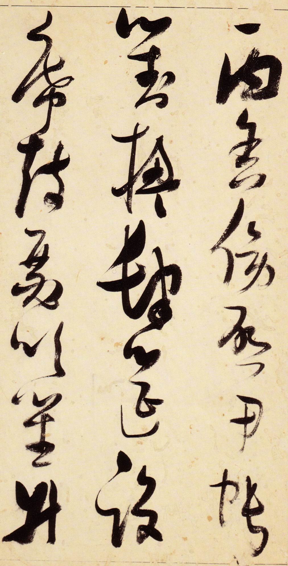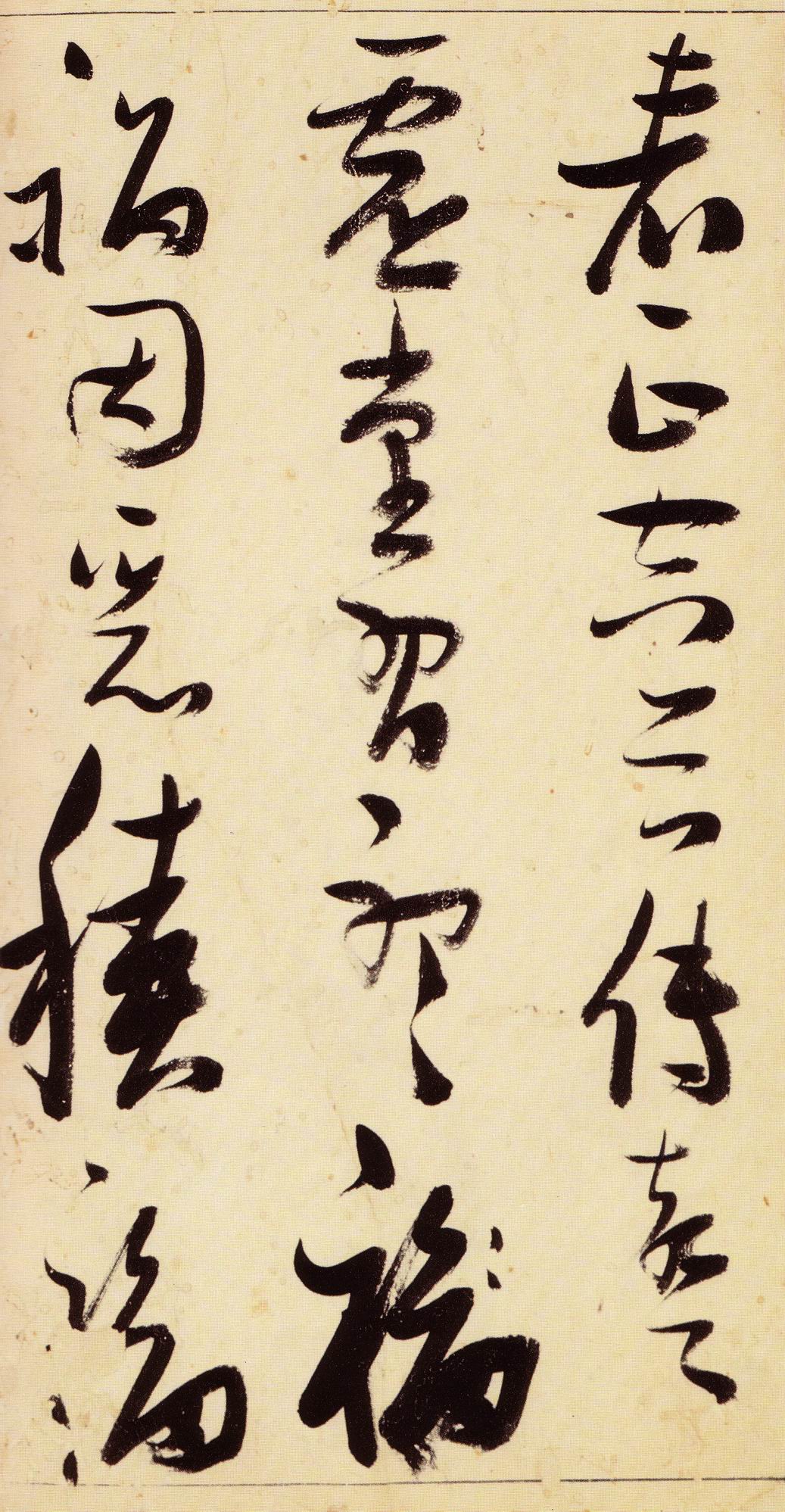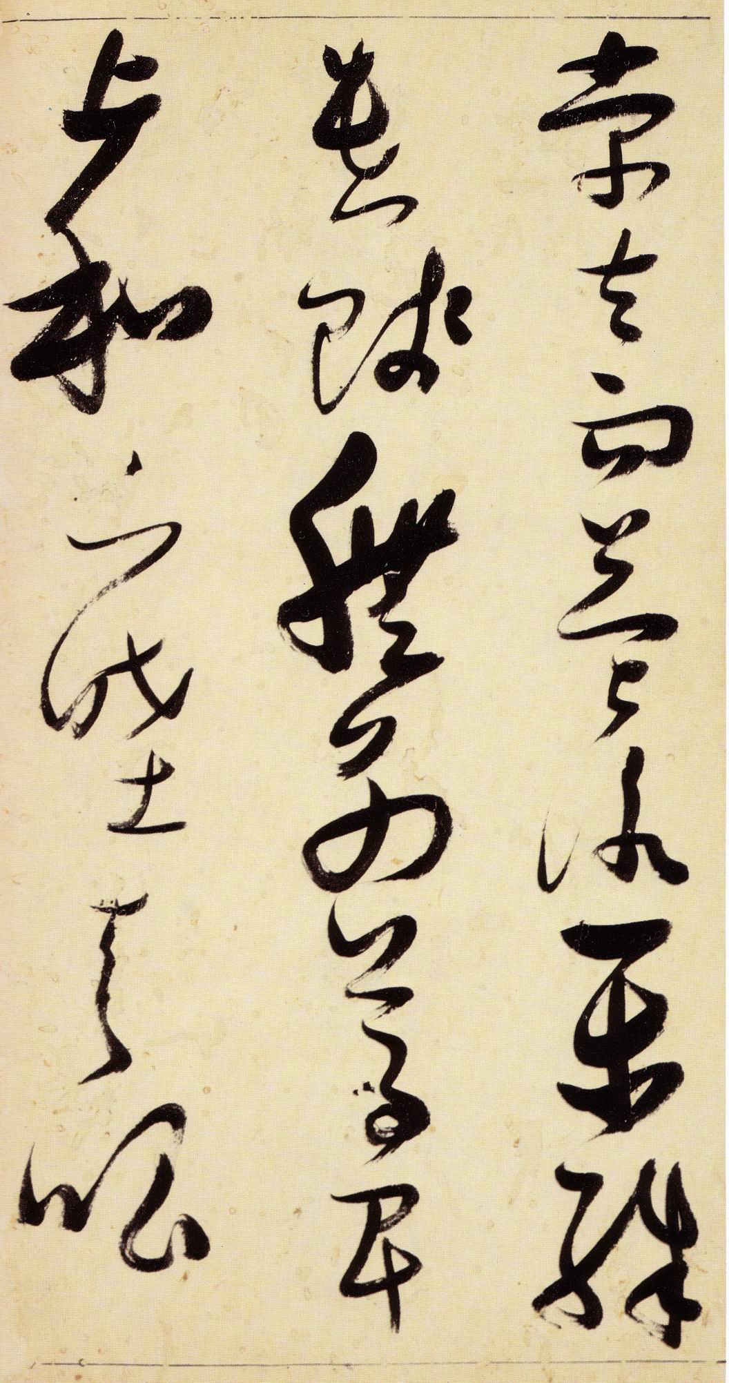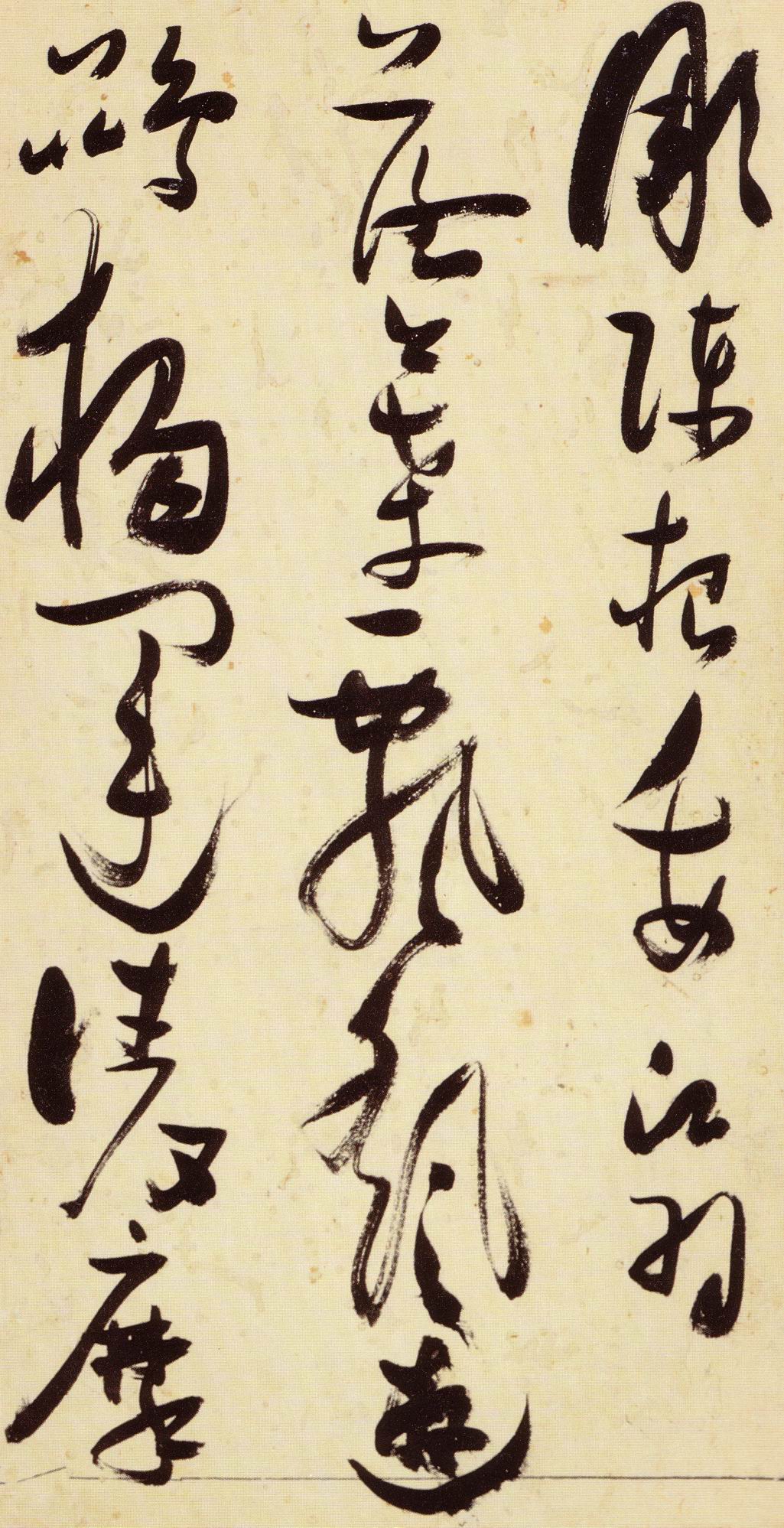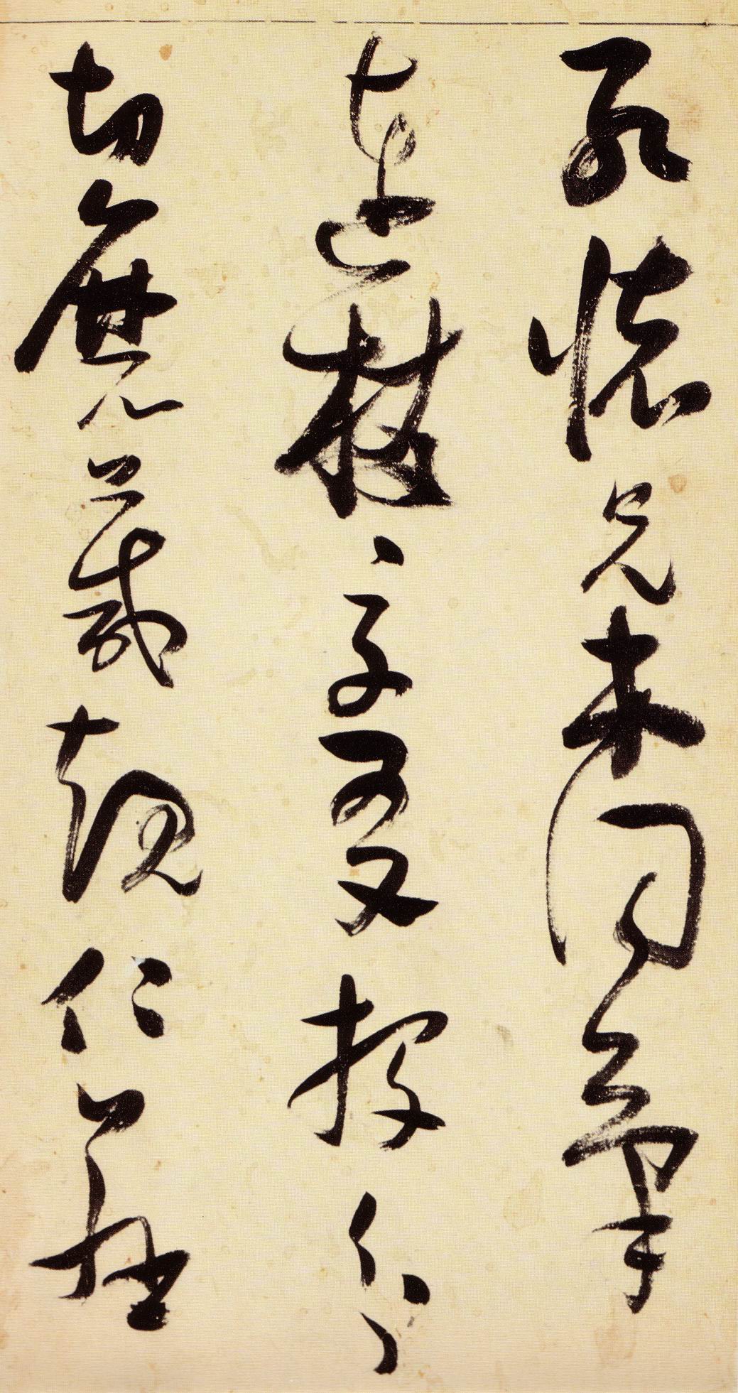 张瑞图《草书千字文》卷 天启三年(1623) 此卷末署款“天啟癸亥书於都中,张长公瑞图。”天啟癸亥三年(1623年) 时,张在京任职,尚未入内阁,此卷為五十四岁所书,风格已趋成熟,然仍保留学孙 过庭和苏軾的某些笔法。全篇字与字之间连笔下多,而运笔之气贯通,以显示其放 逸之势:各字大小变化下大,主要靠结体的欹侧反正、紧密开张、左右轻重、上下 错落,来显现起伏跌宕:字姿呈方形的整体结构,又时出奇险之态,点画通过粗细、 乾溼、疏密、方圆的变化,表现出跳荡之势;全幅呈字距紧密、行距宽疏的布局,然 紧密字距中,时用舒缓的笔法和揖让的结体来调节,宽疏行距中,又时以出格之字 和破直之势来调节,从而达到了密而不窒、疏而不空的效果。这些都体现了张瑞图 典型书风的主要特色。然此卷笔法多用圆润中锋和厚重笔道,少劲利峻峭之势;转 折处多婉转,并非每转必折,每折必劲,也少侧锋偃笔;在奇异结体中仍时见瀟洒 秀丽之字,狂放而未失於怪诞。这些特点表明孙过庭车书所具的流润和法度之影响 尚未完全消褪,苏軾浑厚凝重的笔法仍在起作用,北朝碑学之痕跡尚下显著。因此, 这卷《草书千字文》反映的是张瑞图转变时期书风,对了解他的书法发展演变轨 跡具有重要参证价值。