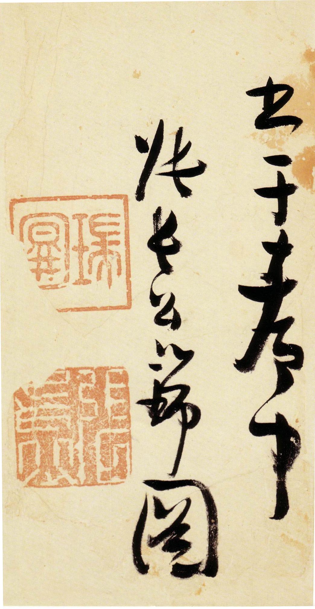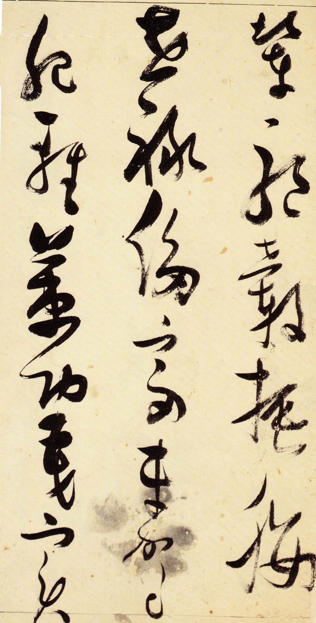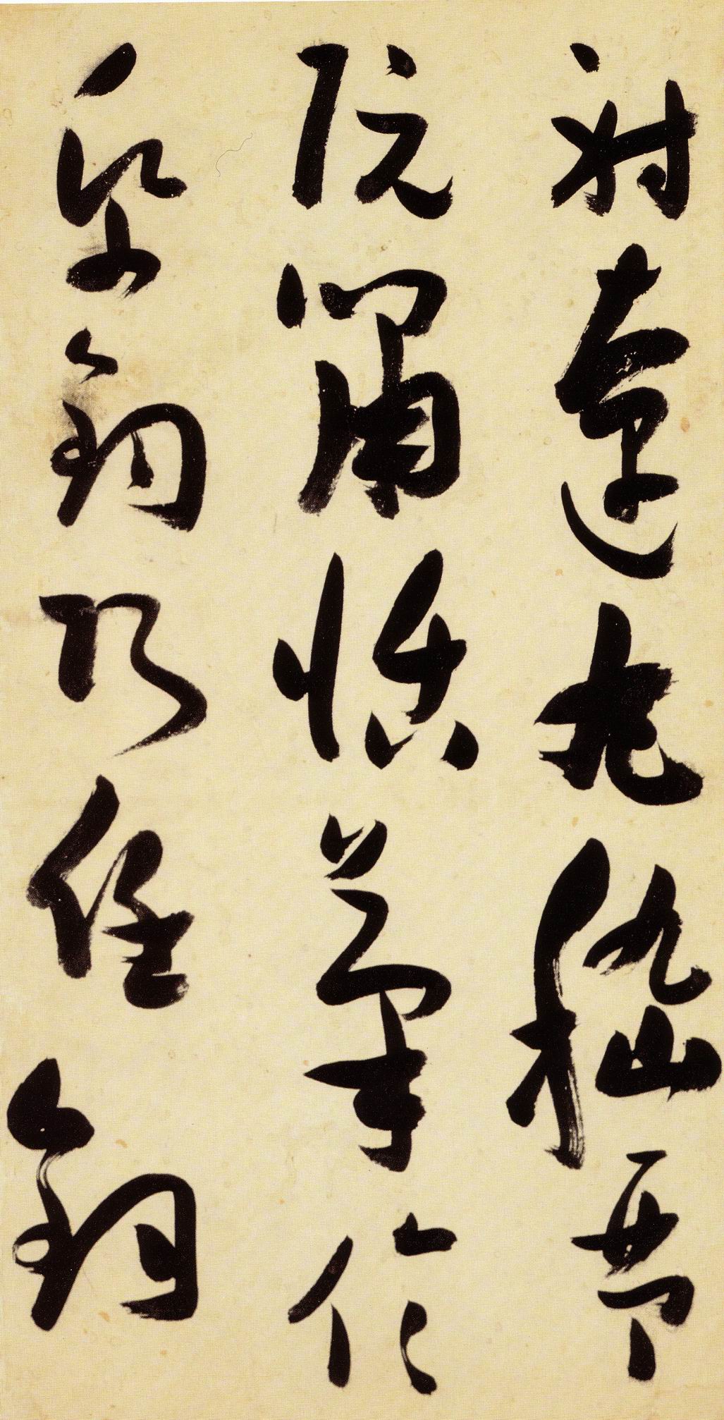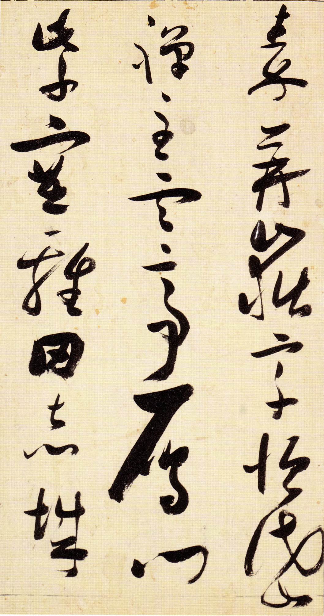 张瑞图《草书千字文》卷 天启三年(1623) 此卷末署款“天啟癸亥书於都中,张长公瑞图。”天啟癸亥三年(1623年) 时,张在京任职,尚未入内阁,此卷為五十四岁所书,风格已趋成熟,然仍保留学孙 过庭和苏軾的某些笔法。全篇字与字之间连笔下多,而运笔之气贯通,以显示其放 逸之势:各字大小变化下大,主要靠结体的欹侧反正、紧密开张、左右轻重、上下 错落,来显现起伏跌宕:字姿呈方形的整体结构,又时出奇险之态,点画通过粗细、 乾溼、疏密、方圆的变化,表现出跳荡之势;全幅呈字距紧密、行距宽疏的布局,然 紧密字距中,时用舒缓的笔法和揖让的结体来调节,宽疏行距中,又时以出格之字 和破直之势来调节,从而达到了密而不窒、疏而不空的效果。这些都体现了张瑞图 典型书风的主要特色。然此卷笔法多用圆润中锋和厚重笔道,少劲利峻峭之势;转 折处多婉转,并非每转必折,每折必劲,也少侧锋偃笔;在奇异结体中仍时见瀟洒 秀丽之字,狂放而未失於怪诞。这些特点表明孙过庭车书所具的流润和法度之影响 尚未完全消褪,苏軾浑厚凝重的笔法仍在起作用,北朝碑学之痕跡尚下显著。因此, 这卷《草书千字文》反映的是张瑞图转变时期书风,对了解他的书法发展演变轨 跡具有重要参证价值。