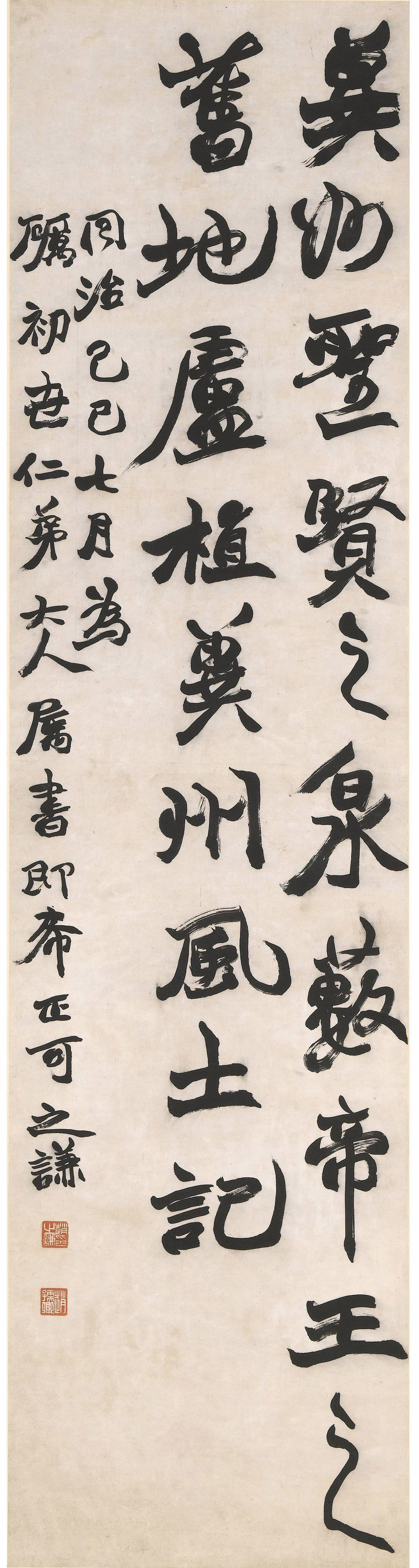 款识:同治己巳(1869年)七月,为砺初世仁弟大人属书,即希正可。之谦。
