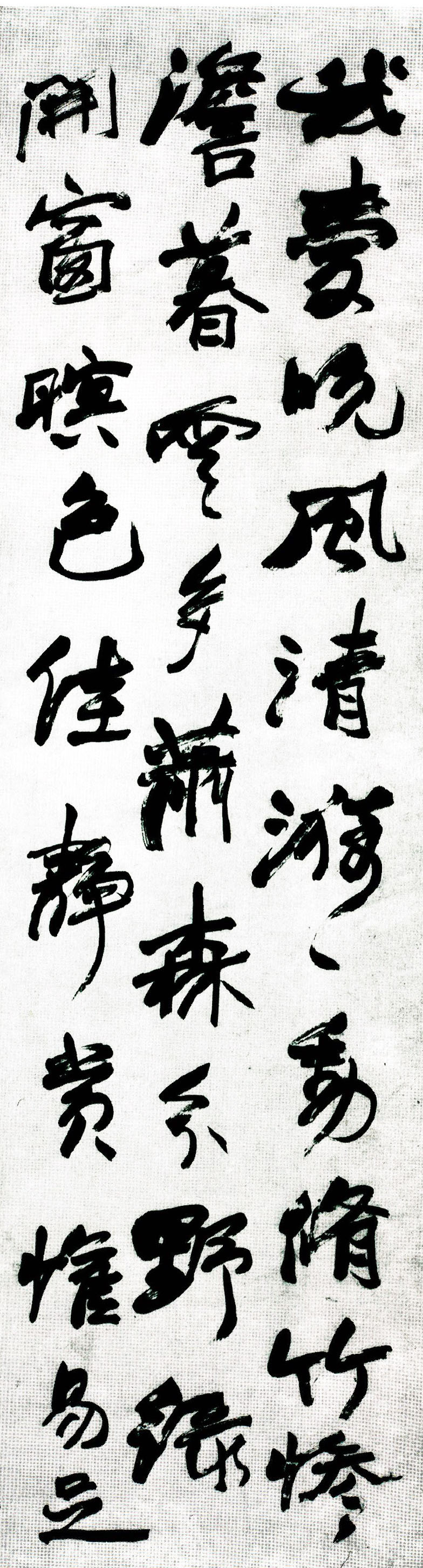 释文:我爱晚风清,漪漪动修竹。惨澹暮云多,萧森分野绿。开窗暝色佳,静赏欢易足。人生遽如许,万事徒碌碌。有尽壮士金,余繆匹夫玉。轩车韫斧鉞,粱肉隐耻辱。嫋嫋五株柳,采采三径菊。高歌晚风前,洗盏酌醽醁。月华滟滟水悠悠,圆月沉时曙色浮。自笑驱驰亦如月,东来西去几时休。