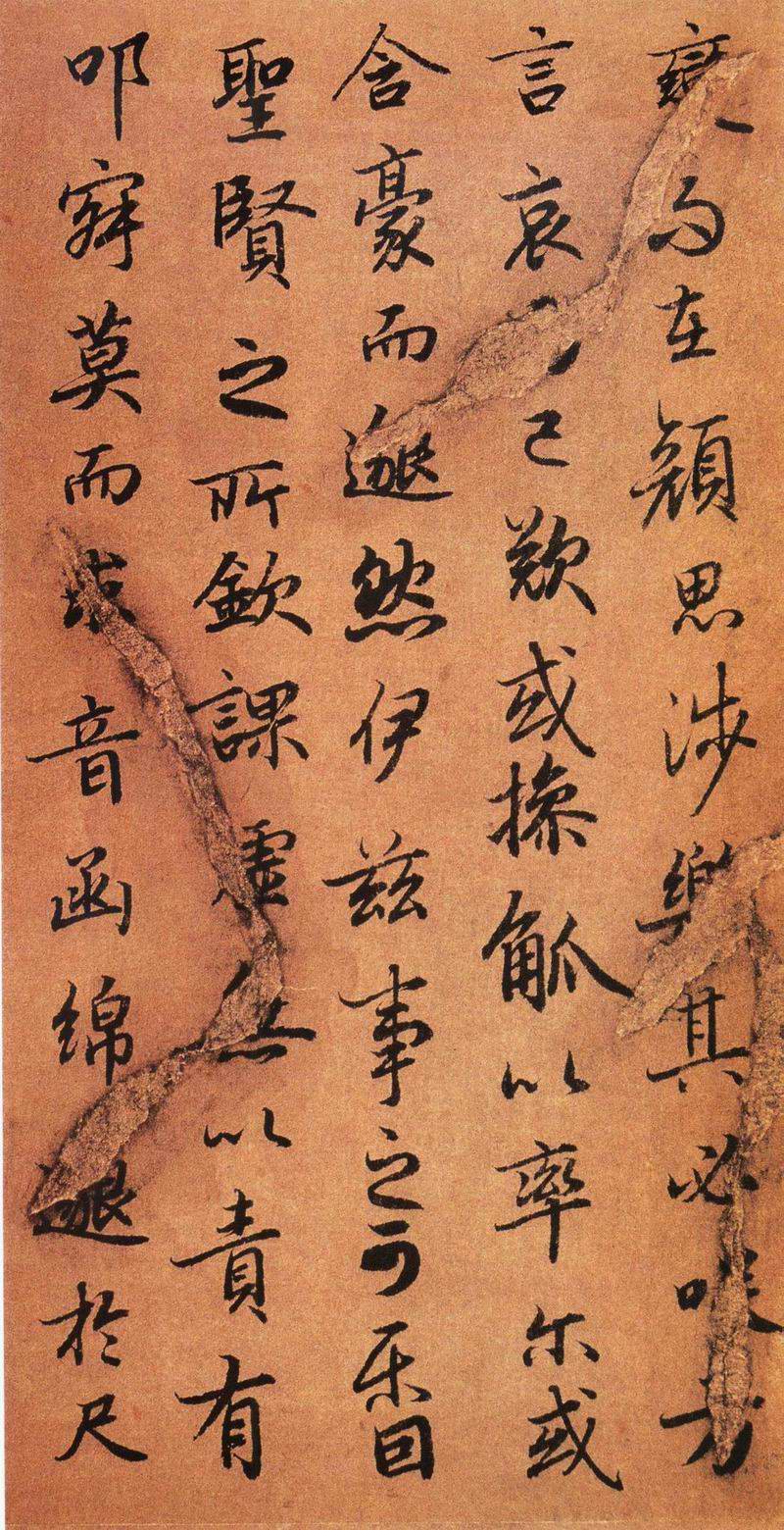 顺便指出一下,此帖偶有于行书中杂写草书的地方,有不协调之感,或许是陆柬之的一种尝试。又正因为《文赋》太似大王书,所以其艺术个性也就显得不强了。《文赋》真迹清时入内府,后藏北京故宫博物院。现藏我国台湾故宫博物院。
