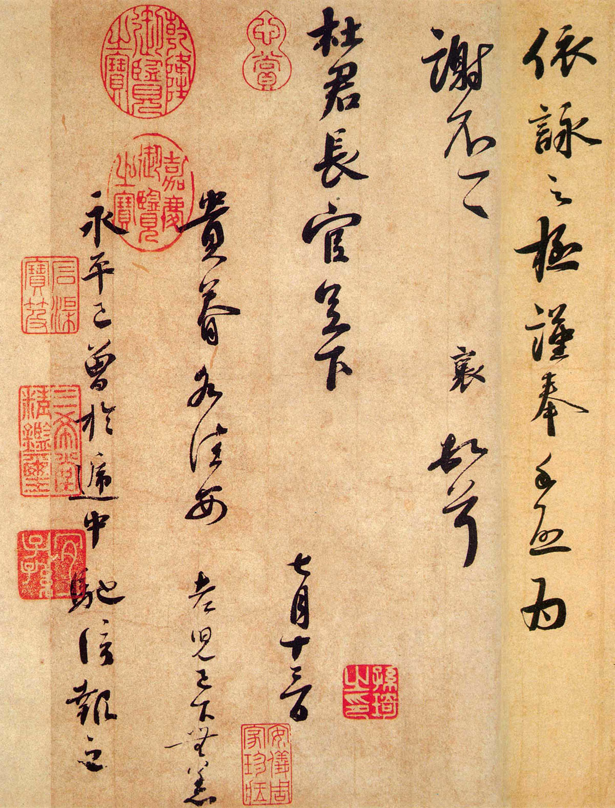 蔡襄《离都帖》(致杜君长官尺牍) 纸本 行书 29.2cm ×46.8cm 台北故宫博物院藏