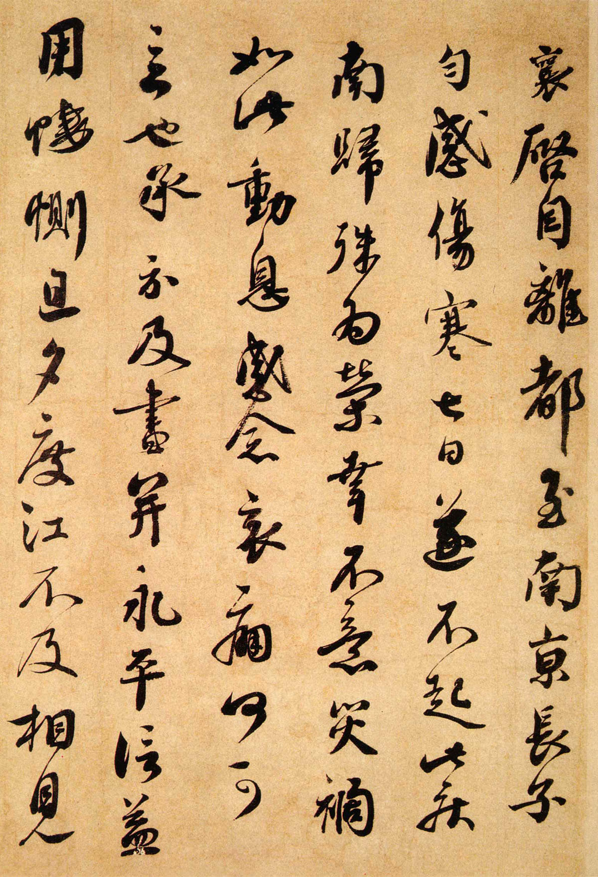 释文:襄啟。自离都至南京。长子匀感伤寒七日。遂不起此疾。南归殊為荣幸。不意灾祸如此。动息感念。哀痛何可言也。承示及书。并永平信。益用悽惻。旦夕渡江。不及相见。依咏之极。谨奉手啟為谢。不一一。襄顿首。杜君长官足下。七月十三日。贵眷各佳安。老儿已下无恙。永平已曾於递中。驰信报之。