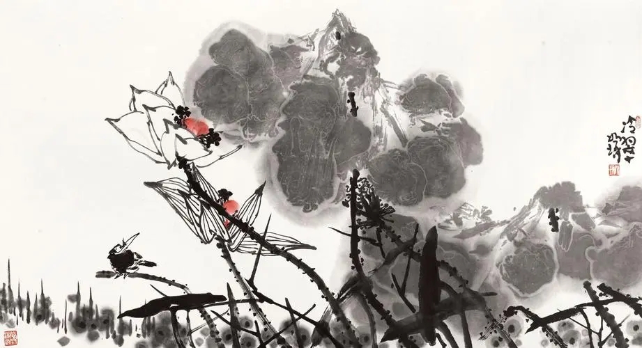 崔如琢花鸟画《荷花》14幅