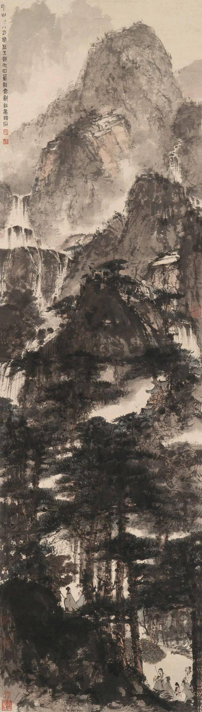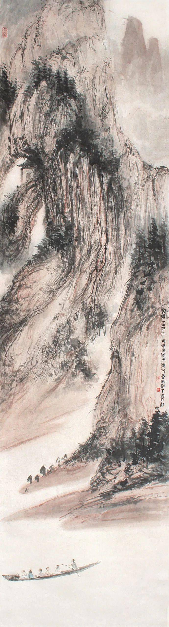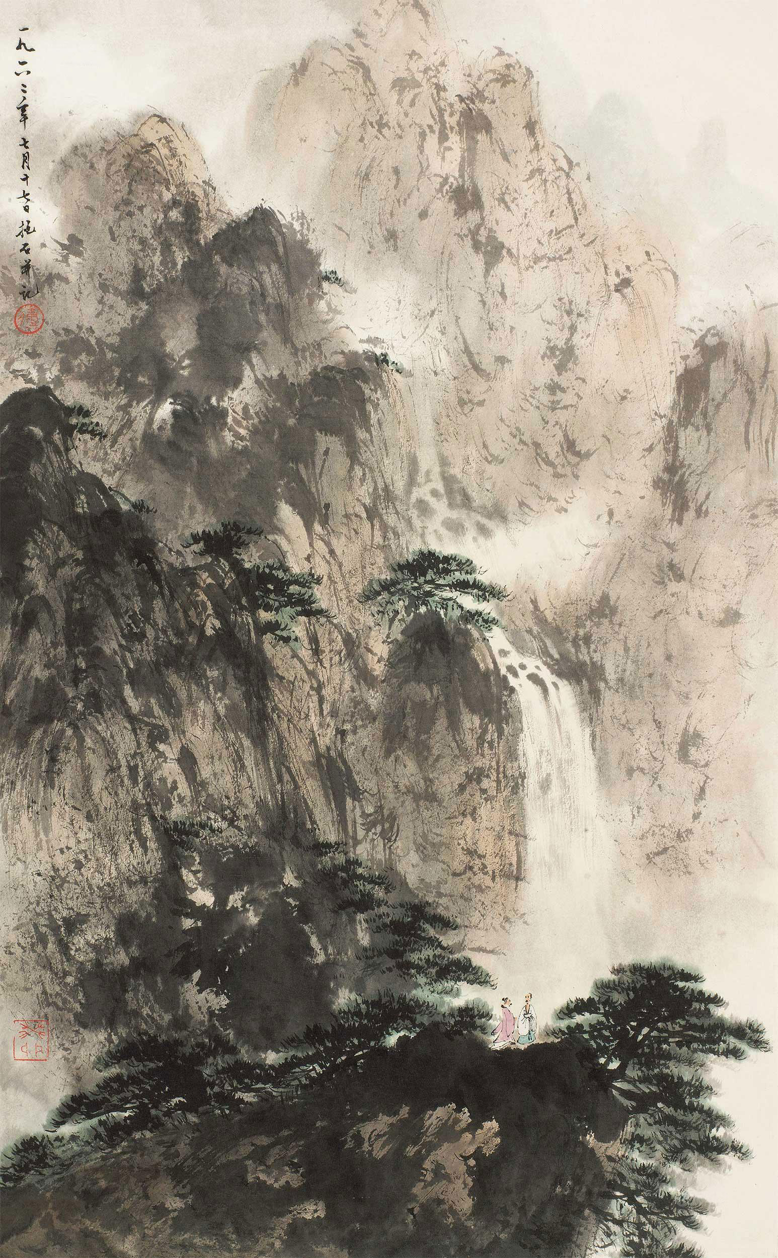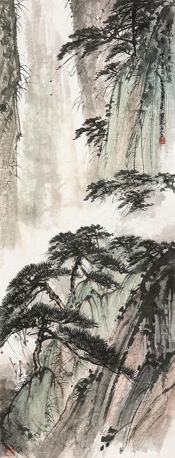 傅抱石(1904年10月5日—1965年9月29日),出生于江西南昌,祖籍江西新喻(今新余市)北岗乡樟塘村,原名长生,名中洲,字庆远,学名瑞麟,号抱石斋主人,“抱石”名字来自清代画家石涛 。中国近现代中国画家、美术史论家、书法家、美术教育家,“新山水画”代表画家。其主要绘画作品有《屈原》《江山如此多娇》《煤都壮观》《林海雪原》《天池林海》《镜泊飞泉》等。