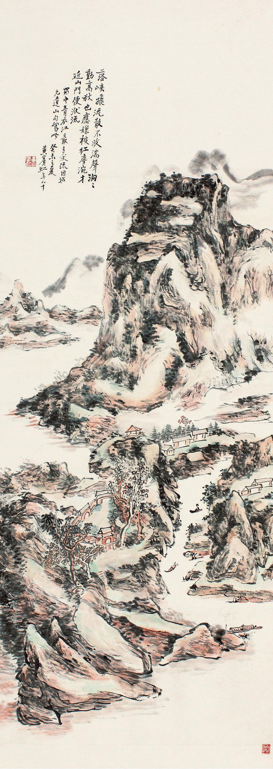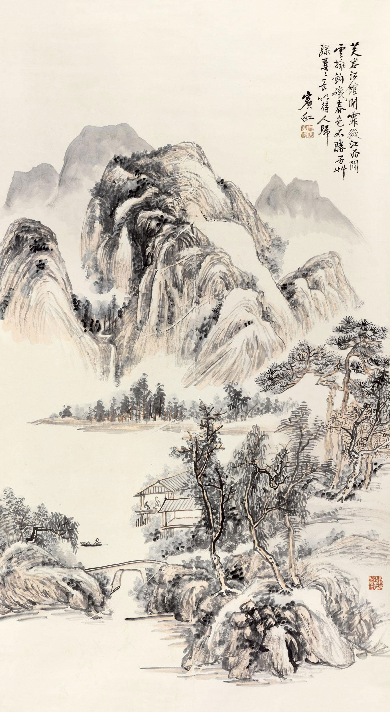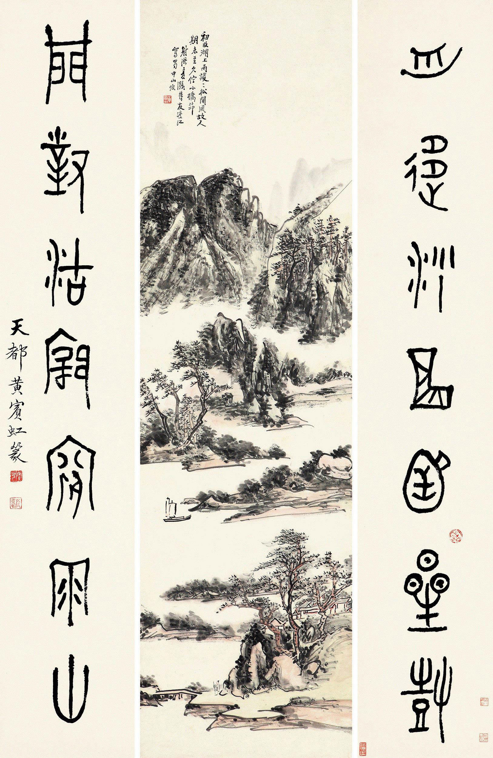 黄宾虹(1865年1月27日—1955年3月25日),原名懋质,名质,字朴存、朴岑,亦作朴丞、劈琴,号宾虹,别署予向、虹叟、黄山山中人等,原籍安徽歙县,出生于浙江金华,中国近现代国画家、书法家、篆刻家、诗人、艺术教育家 [6],与齐白石合称“南黄北齐”。主要绘画作品有《蜀江归舟图》《焦墨山水》《九子山》等;出版画册有《黄宾虹纪游画册》《黄宾虹山水画册》《黄宾虹山水画集》《黄宾虹写生画册》《黄宾虹山水写生画册》《黄宾虹画集》等;出版著作有《陶玺文字合证》《古印概论》《古籀论证》《古文字释》《古画微》《虹庐画谈》《鉴古名画论》《黄山画家源流》《画法要旨》《宾虹草堂印谱》《画学编》《宾虹杂著》《宾虹诗草》《美术丛书》《神州大观》《神州国光集》《中国名画集》等。