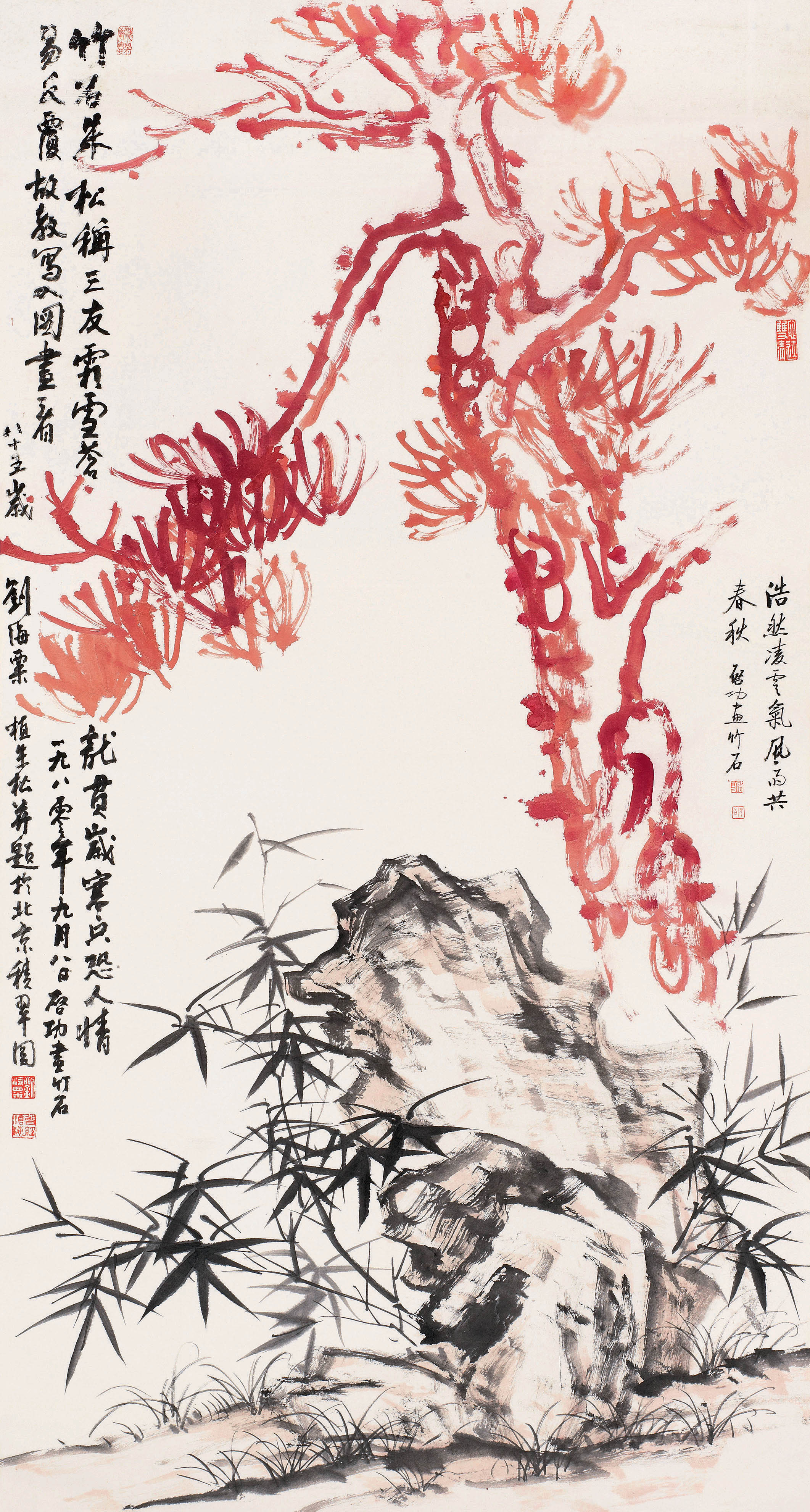 刘海粟于1914年任上海图画美术院副校长 [15];1915年—1952年,任上海美术专科学校校长;1932年,编辑出版《世界名画集》,10月,在上海举办“刘海粟欧游作品展览会”;1937年10月,创作油画作品《四行仓库》;1952年11月—1957年11月,任华东艺术专科学校校长;1957年,在上海美术馆举办“刘海粟国画油画展览”;1968年,创作国画作品《葡萄图》《牡丹图》《寥廓江天万里霜》《松石图》等;1979年6月,“刘海粟绘画展览会”在中国美术馆举行;1979年6月—1983年3月,任南京艺术学院院长;1988年9月,“刘海粟十上黄山画展”在上海美术馆举行 ;1991年3月,获得香港大学名誉文学博士学位,并获评为“享受国务院特殊津贴专家”;1994年8月7日,在上海逝世,享年98岁。
