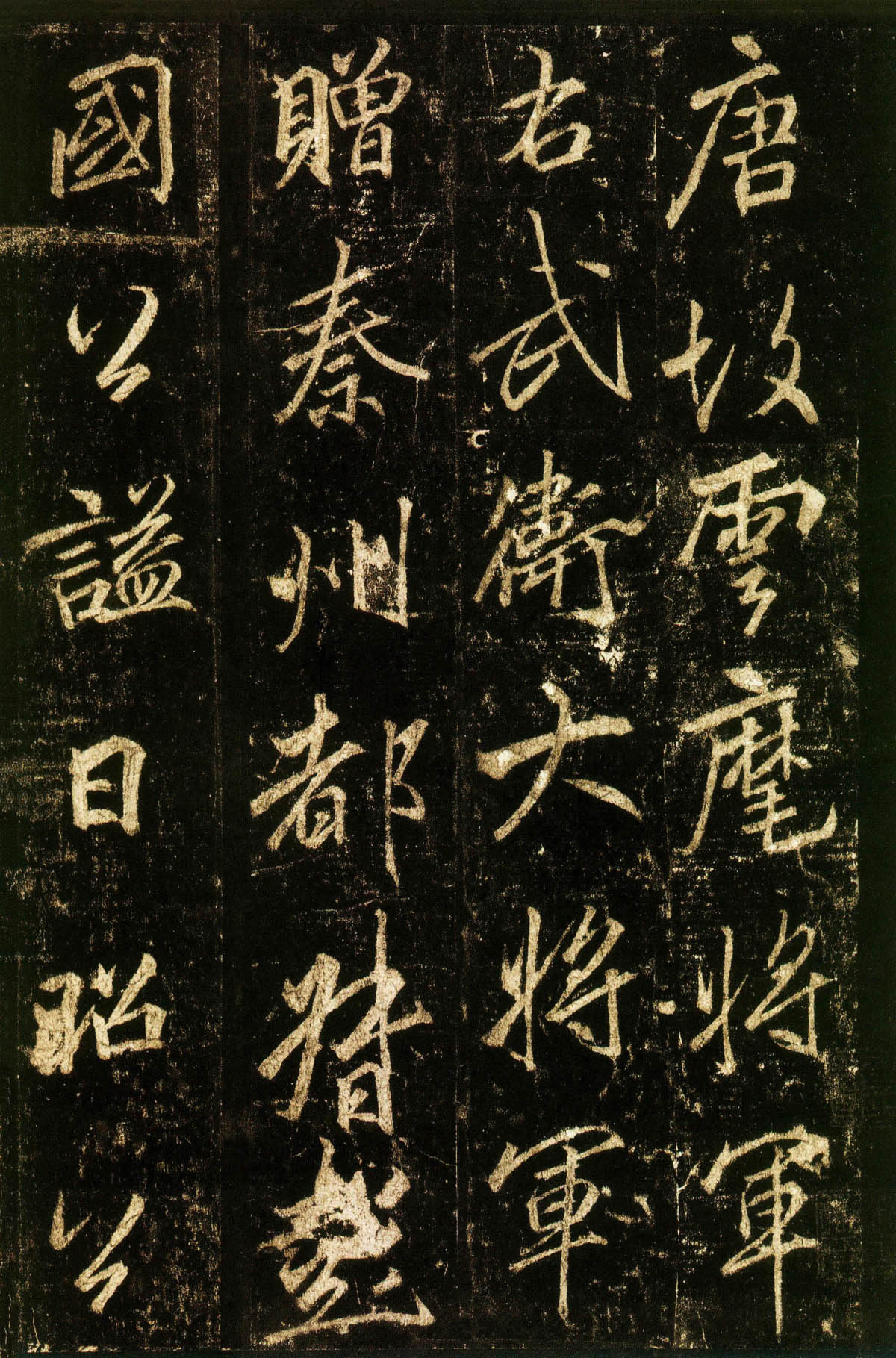 《云麾将军碑》全称《唐故云麾将军右武卫大将军赠秦州都督彭国公谥曰昭公李府君神道碑并序》,亦称《李思训碑》,碑文记载李思训系出唐代宗室,并及一生功名仕宦重要事,李邕撰文书碑。立於唐代右武卫大将军李思训(653-718)墓道,在今陕西蒲城桥陵。碑建於何年迄未获得定论,然可知在唐玄宗开元八年(720)以後。《金石萃编》载:碑高一丈一尺三寸六分,宽四尺八寸五分。字共三十行,满行七十字。碑石下半段文字残缺已甚。