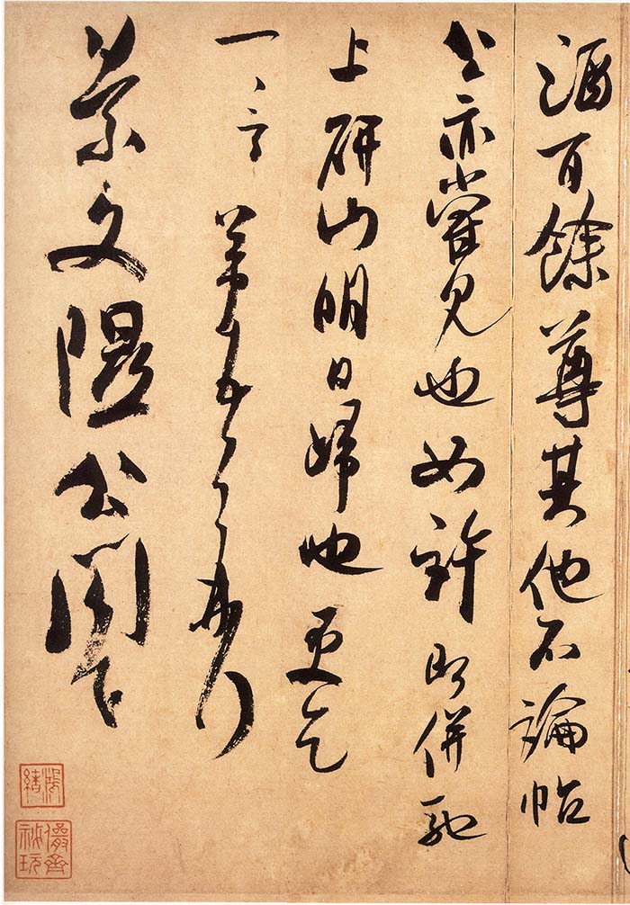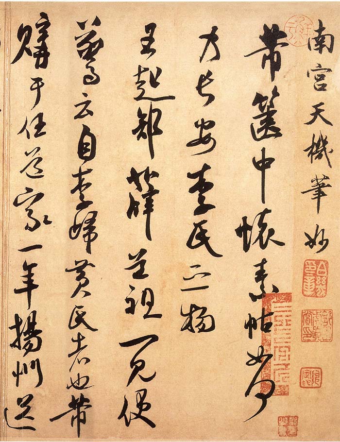 米芾《箧中帖》(又称《致景文隰公阁下尺牍》、《天机笔妙帖》) 行草书。纸本。信札一则。约书于北宋哲宗元祐六年(1091)。纵28.4厘米,横39.5厘米。台北故宫博物院藏。