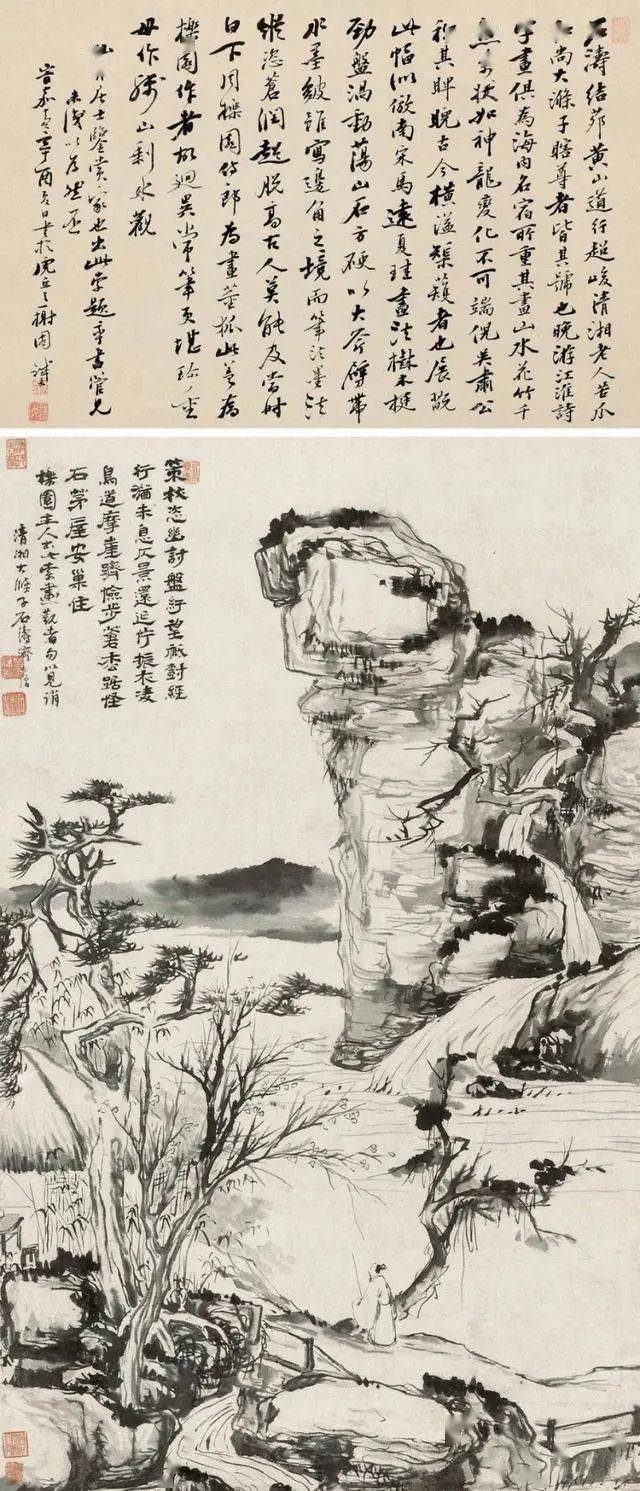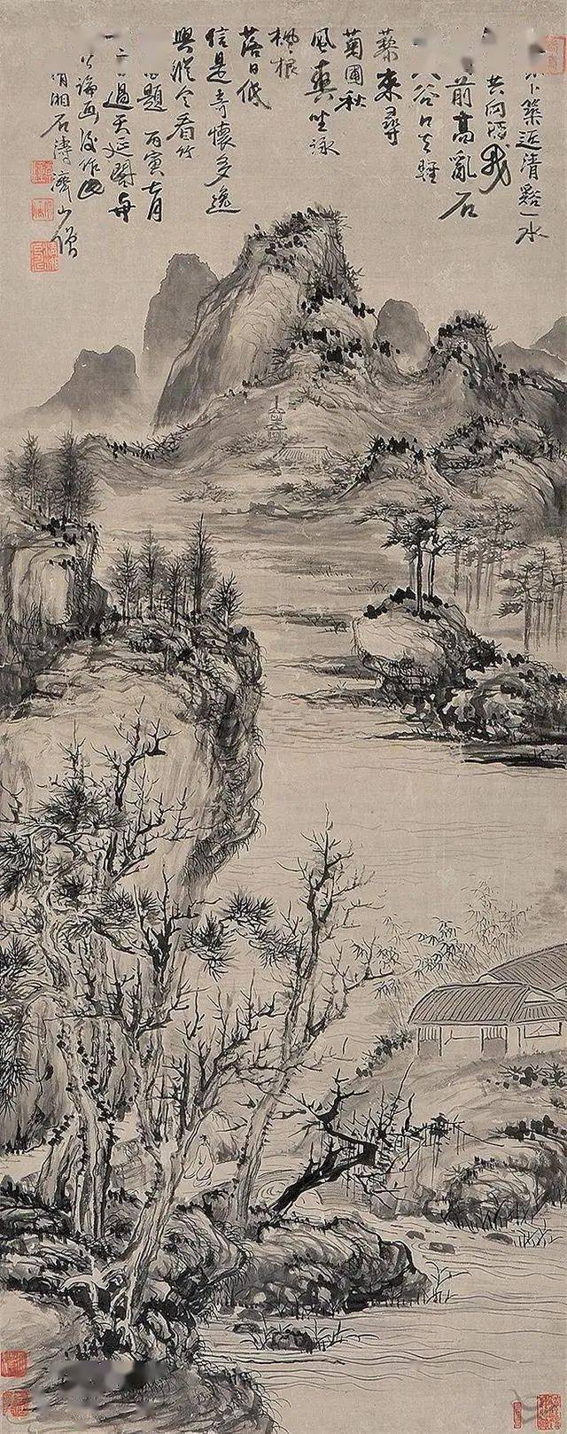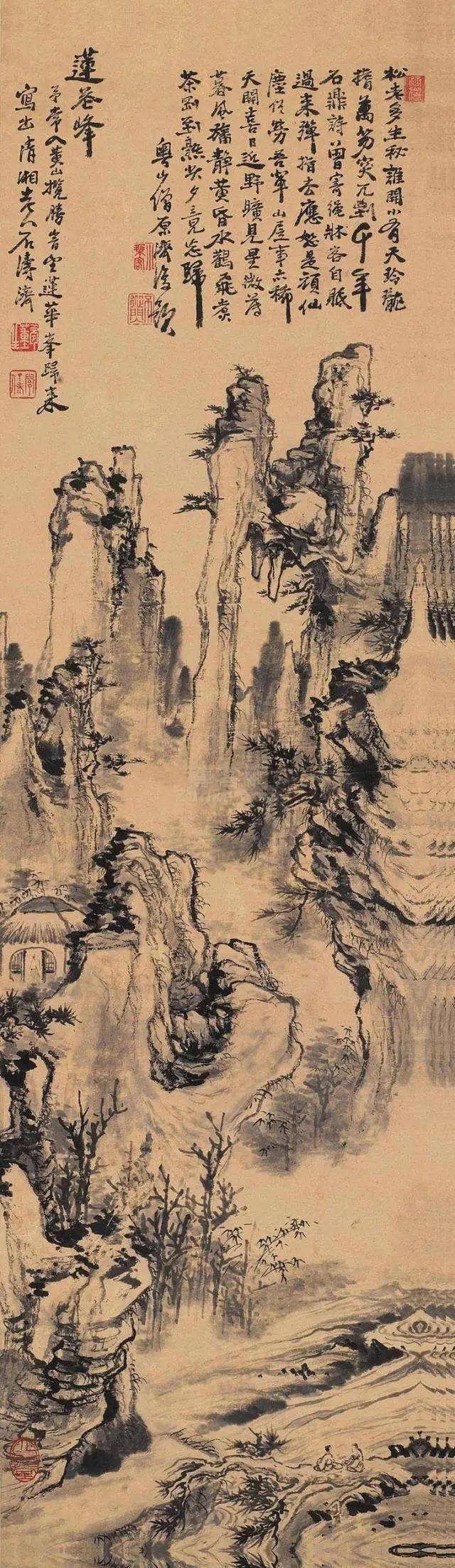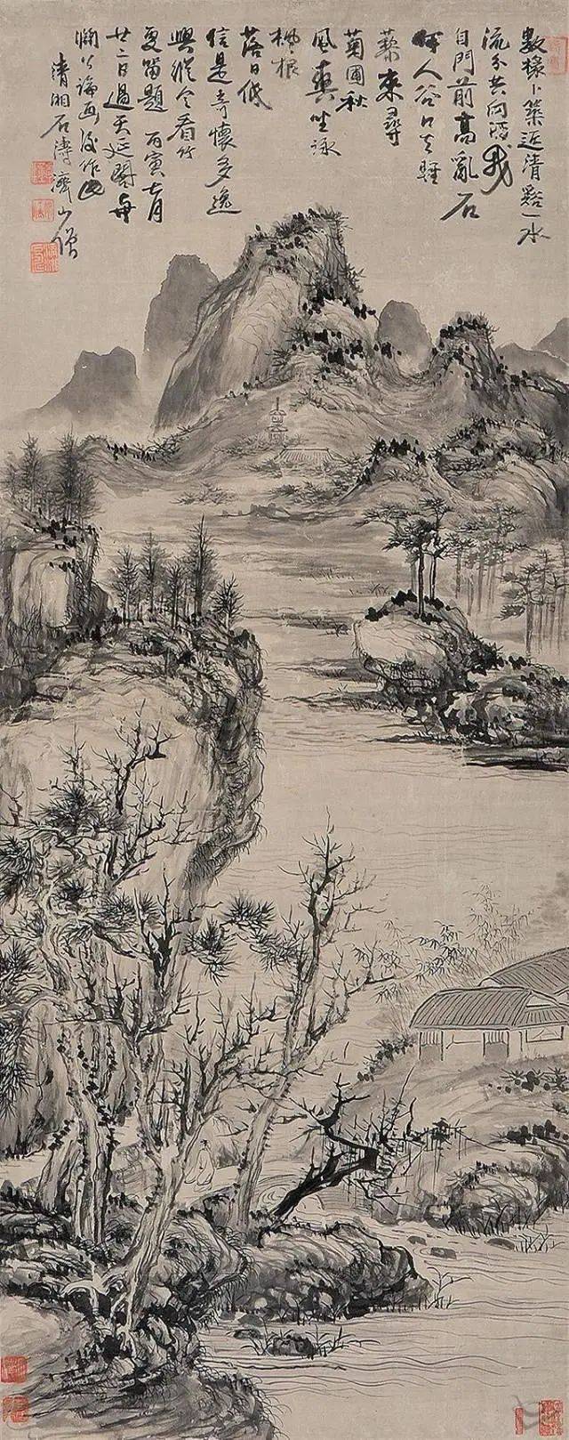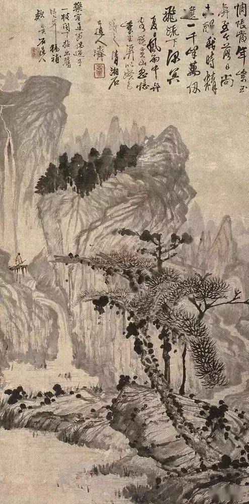 石涛幼年遭变后出家为僧,驻锡于安徽宣城敬亭山广教寺,后半世云游,以卖画为业。早年山水师法宋元诸家,画风疏秀明洁,晚年用笔纵肆,墨法淋漓,独创“万点恶墨”技法和截断式构图,尤精册页小品;花卉潇洒隽朗,天真烂漫,清气袭人;人物生拙古朴,别具一格。工书法,小楷深得钟繇精髓,所书《道德经》全卷五千余字现存台北故宫;能诗文。存世作品有《石涛罗汉百开册页》《搜尽奇峰打草稿图》《山水清音图》《竹石图》《墨梅册》等。著有《苦瓜和尚画语录》,提出“一画论”“搜尽奇峰打草稿”“笔墨当随时代”等理论。