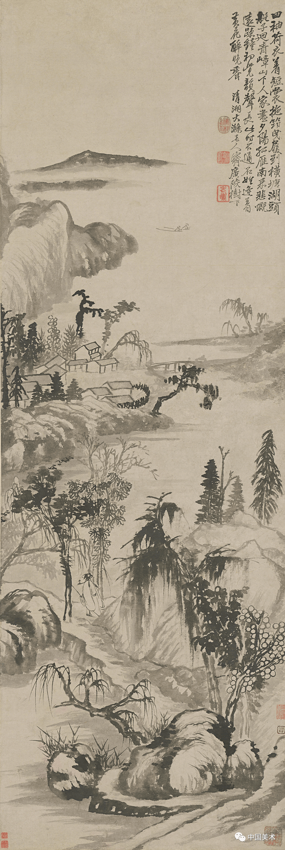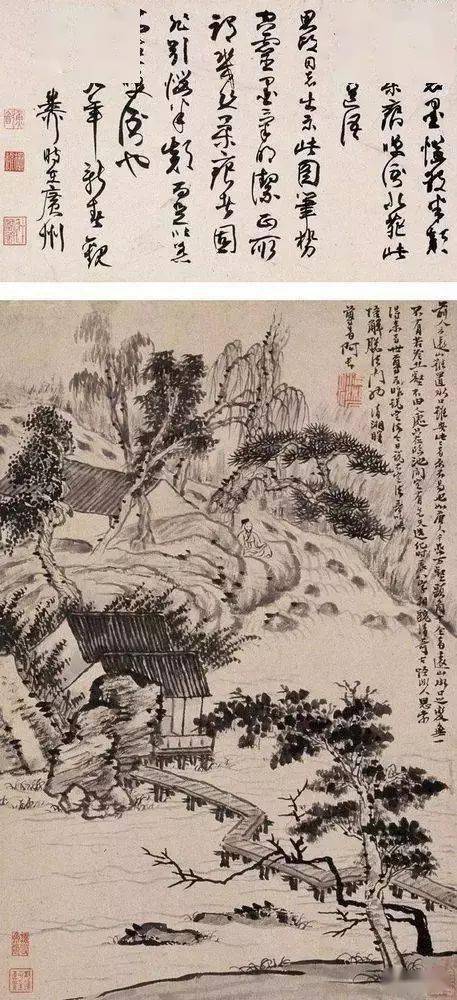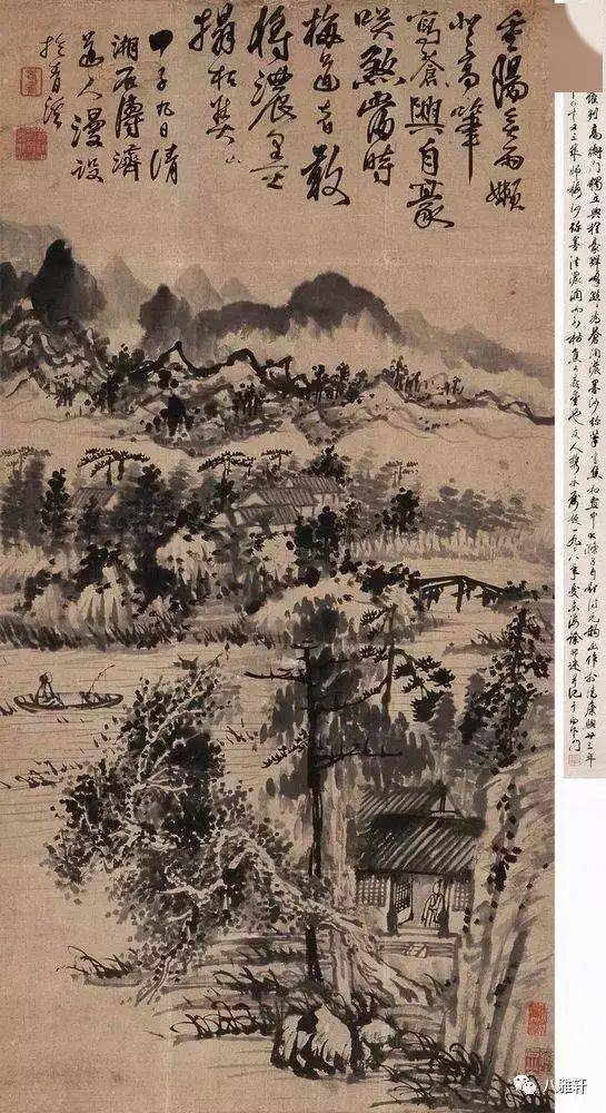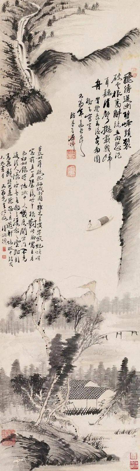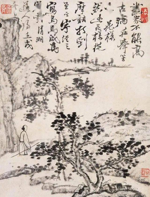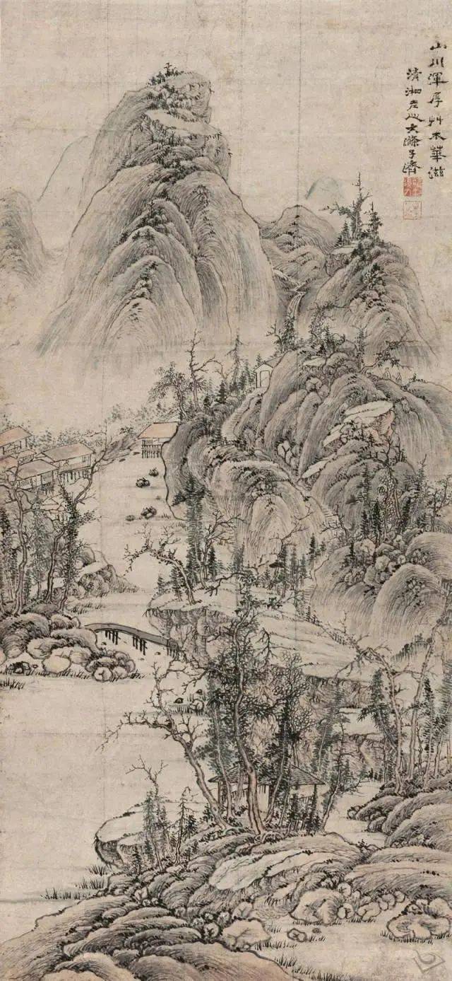 石涛幼年遭变后出家为僧,驻锡于安徽宣城敬亭山广教寺,后半世云游,以卖画为业。早年山水师法宋元诸家,画风疏秀明洁,晚年用笔纵肆,墨法淋漓,独创“万点恶墨”技法和截断式构图,尤精册页小品;花卉潇洒隽朗,天真烂漫,清气袭人;人物生拙古朴,别具一格。工书法,小楷深得钟繇精髓,所书《道德经》全卷五千余字现存台北故宫;能诗文。存世作品有《石涛罗汉百开册页》《搜尽奇峰打草稿图》《山水清音图》《竹石图》《墨梅册》等。著有《苦瓜和尚画语录》,提出“一画论”“搜尽奇峰打草稿”“笔墨当随时代”等理论。
